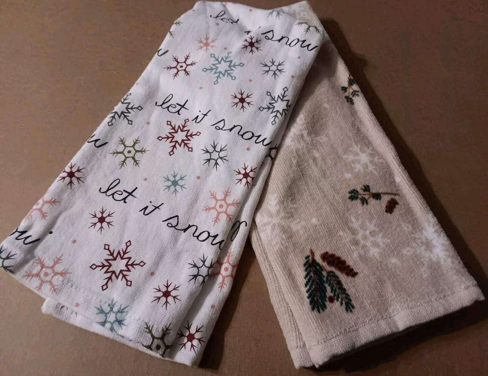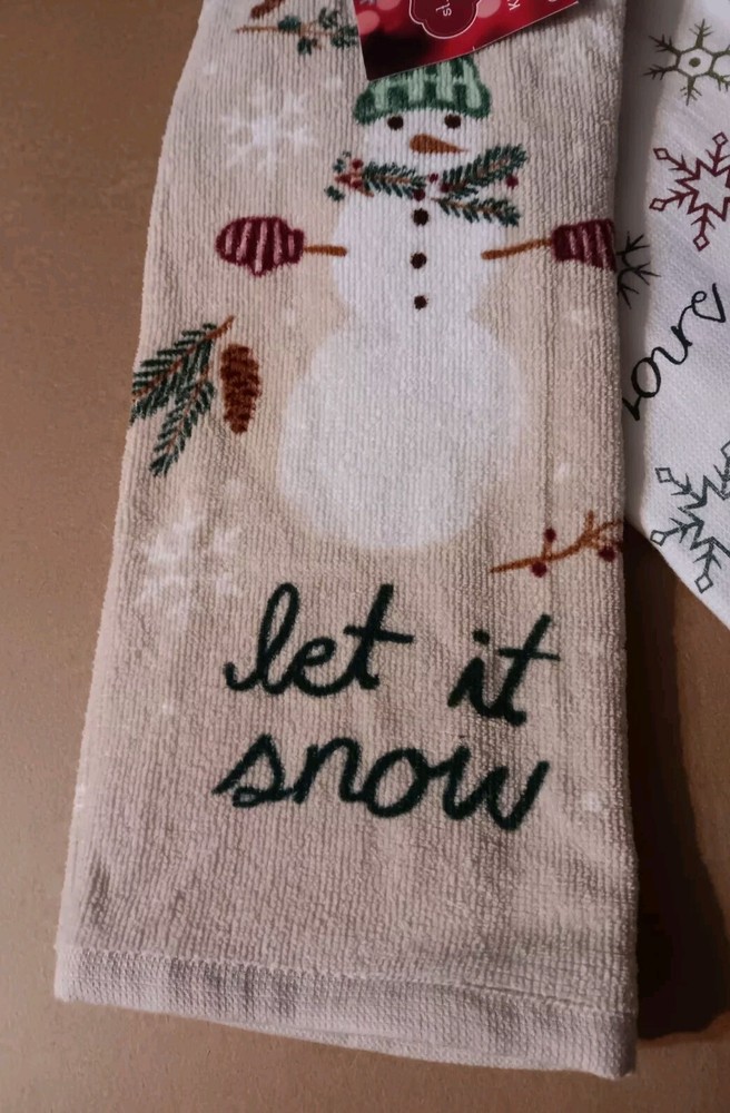 *NEW* St Nicholas Square Christmas Kitchen Towels Set 2-pk Holiday Snowman LET IT SNOW
