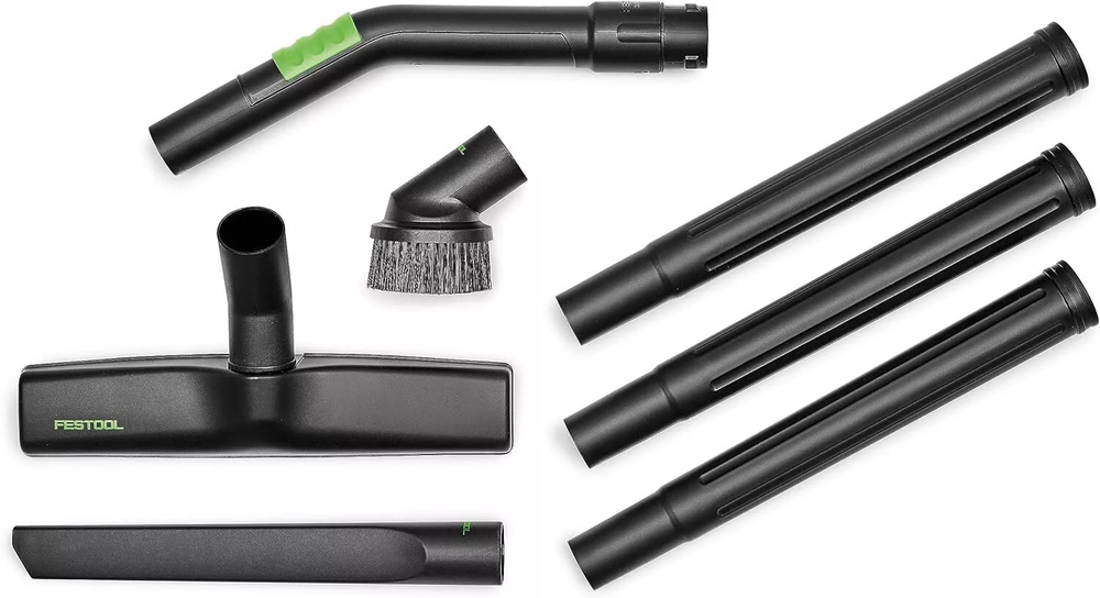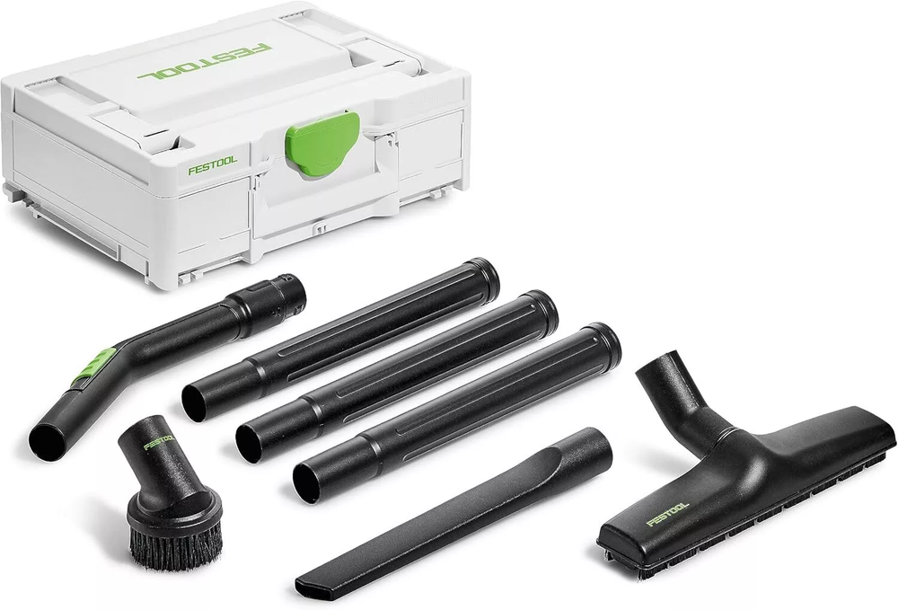 Ideally equipped. It is ideal for all cleaning tasks on surfaces and on the ground. Even narrow spaces aren't a problem – with the standard cleaning set, you are ideally equipped. Main applications: Cleaning of floor areas on the construction site or in the workshop Items included: curved hand tube D 36 HR-K AS; crevice nozzle, D 36 FD-300; floor nozzle, D 36 BD 300; suction brush D 36 SP; extension pipes D 36 VR-K AS; Systainer SYS3 M 137.