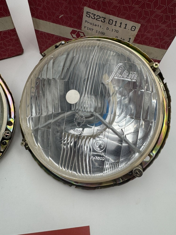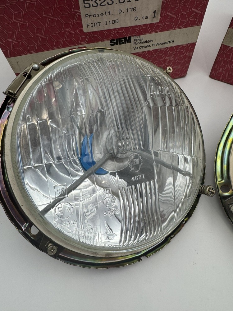 Fanali Anteriori Fiat 1100 D R Siem. Nuovi in confezione originale, fondo di magazzino. Prima dell’acquisto verificare compatibilità del ricambio, grazie. Per info e richieste, contattare il 3278868811 dal lunedì al venerdì dalle 8:00 alle 12:00 e dalle 13:30 alle 18:30.