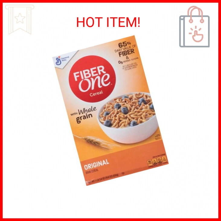 Fiber One Cereal, Original Bran, High Fiber Cereal Made with Whole Grain, 19.6 oz - HIGH FIBER CEREAL: Delivers 65% daily value of fiber per serving. Diets high in fiber can help keep your digestive system on track - FUEL YOUR MORNING: A delicious cereal containing whole grains and 90 calories per serving to help get your morning started - WHOLE GRAIN CEREAL: Each serving provides 18g of whole grain (at least 48g recommended daily), plus vitamins and minerals - FIBER BREAKFAST OR SNACK: Enjoy as a tasty cold cereal, or add the great taste to recipes for bran muffins or high fiber cookies - CONTAINS one 19.6 oz cereal box of General Mills Fiber One Original Bran Cereal Payments We accept the following payment methods PayPal Support Our dedicated customer support team is here to assist you from 9AM to 5PM Monday through Friday, excluding public holidays. Should you reach out to us and not recieve an immediate response, it's likely due to a higher-than-usual volume of inquires. We want to reassure you that your concerns are important to us, and we're working dilligently to get back to you. Expect a response by the next business day at the latest. Your understanding and patience are greatly valued as we strive to provide you with the best support possible! Shipping All orders are processed within 5 business days. Shipping estimates may be shown on this listing by eBay, and these are often not an accurate reflection of our shipping times. If we are experiencing a high volume of orders, shipments may be delayed by a few days. Please allow additional days in transit for delivery. If there will be a significant delay in shipment of your order, we will contact you via message. Shipping rates & delivery estimates Shipping is often free, but if charges for your order apply they will be calculated and displayed at checkout.