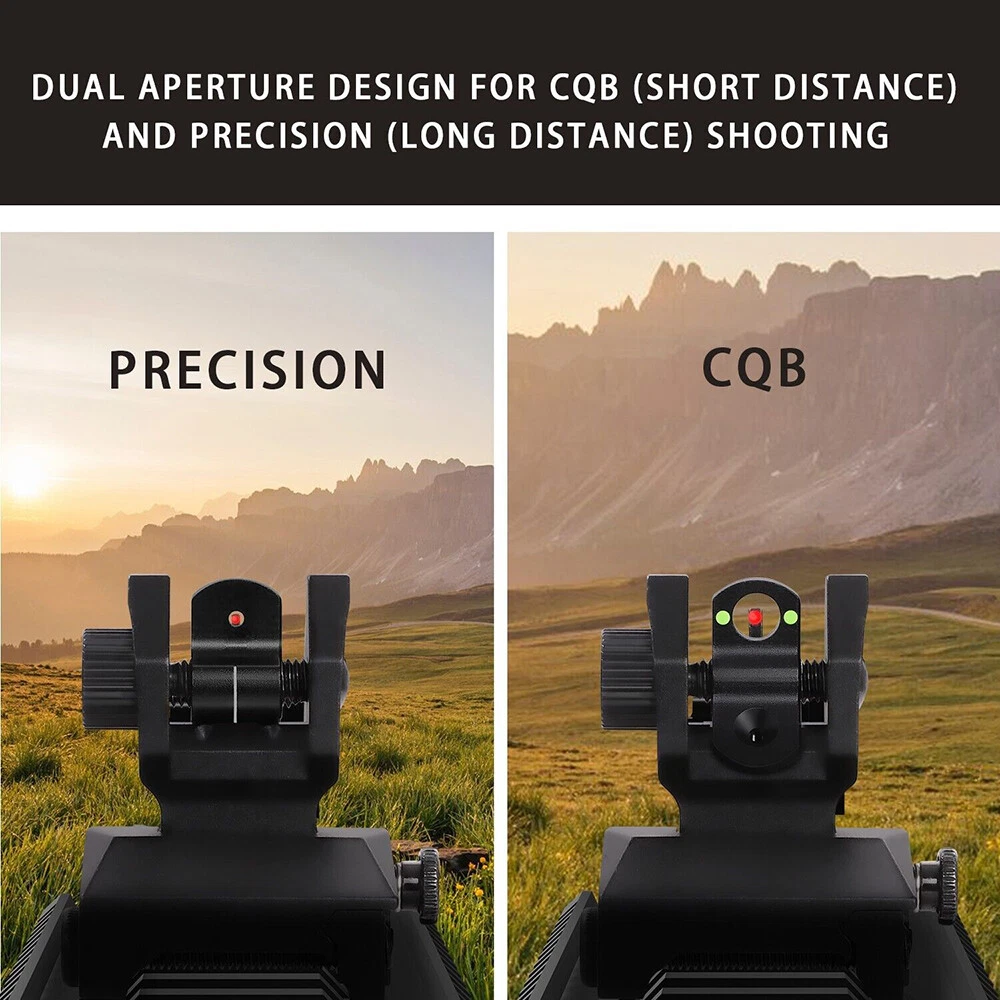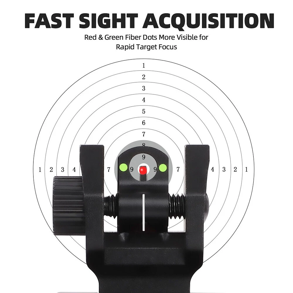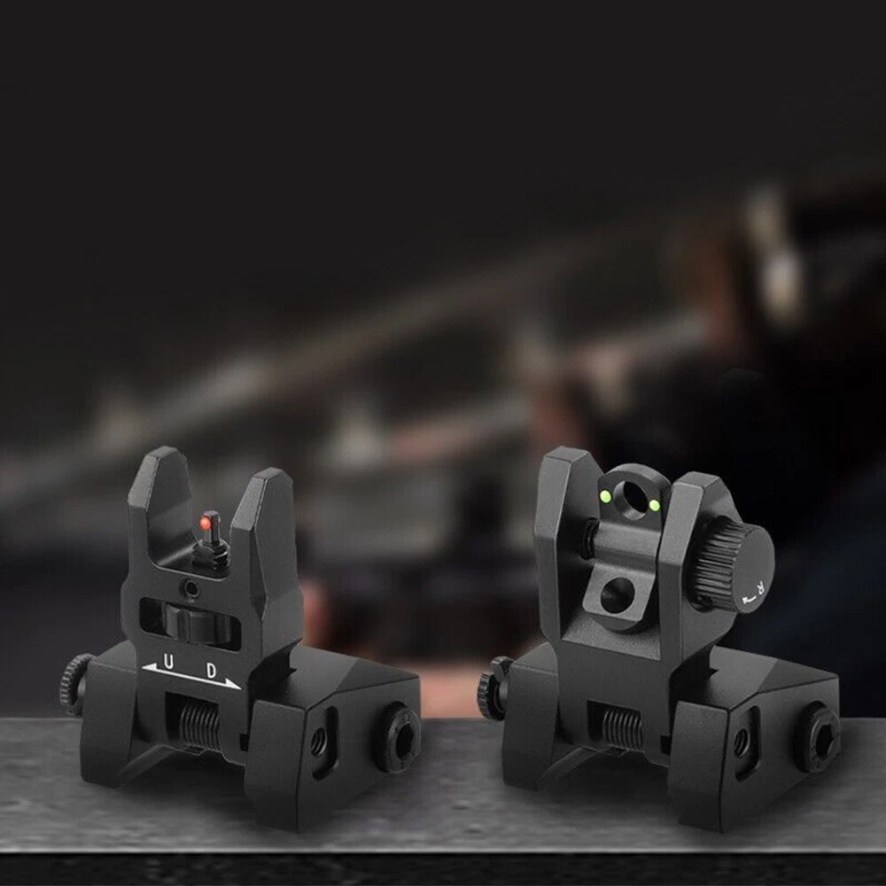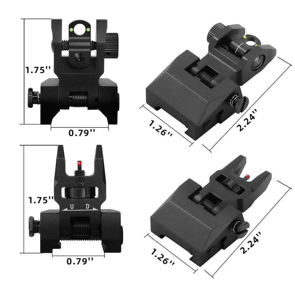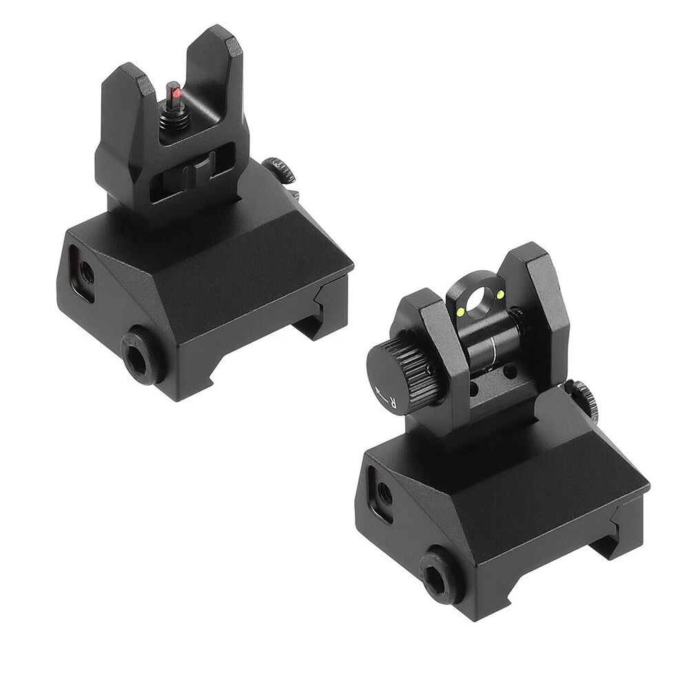Fiber Optic Iron Sight folding Flip Up Iron Front and Rear Sights Picatinny