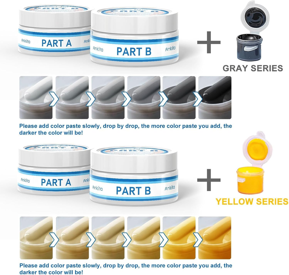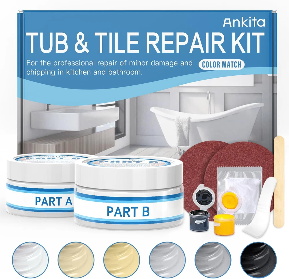 High Viscosity and Waterproof: Cures to be firmly adhered to the tub, sink; dries fast; forms a waterproof, protective layer on the surface for a scratch, chip and rust resistant finish with great heat retention; will never change color Excellent Color Match: Pairs well with white, arctic, milk white, cream, dune, biscuit, almond, bone, celadon, heavy gray, ice gray, cashmere, thunder gray and black; seamlessly repairs chips, cracks, holes, etc; no primer and additional paint is required Safe Formula: Made of safe raw materials, no odor, skin-friendly and safe for anyone; pigments can greatly blend with the product and solidify, forming an insulating layer on the surface, make it never dissolve in water; for fiberglass, acrylic, enamel Cost-effective: No need to pay expensive bills from the repair shop any more! Ankita bath tub repair kit works well with any bathtub paint and can give you professional results, perfectly saving money and time for you Enjoy the Results, or It’s on Us: Your satisfaction is important to us! If you don’t get the results you want from our product, we will solve your misgiving includes resupply flawless product or make up all value of your order Product Description Easily Matches Color of Fiberglass and Acrylic Tubs With Ankita fiberglass tub repair kit, you can perform the repairs yourself ! Everyone can easily do this by themselves without having to change an expensive bathtub. Suitable for anyone, including beginners and non-professionals. Ideal for tub, bathtub, showers, sinks and more in bathroom Add and Mix Colored Tints to Match Your Tubs, Sinks and Tiles When add the dye to the repair formula, you can achieve a range of common tub colors, including shades of white, arctic, milk white, cream, dune, biscuit, almond, bone, celadon, heavy gray, ice gray, cashmere, thunder gray, black,etc. Perfect for Any Different Types of Damage No trace of repair, non-cracking, non-shringking, waterproof and having super strong adhesion, our fiberglass tub repair kit will help you achieve repairs easily and permanently and get rid of the trouble of annoying cracks, chips, scratches, dents on porcelain, fiberglass, acrylic, etc. Get Professional Results Easily and Quickly with Our Fiberglass Tub Repair Kit Ankita bathtub repair kit is long-lasting and dries quickly without trace of repairs, suitable for high-gloss finish surface, giving you the best results. Easy Steps to Match the Colorful Tubs and Showers Excellent for Excellent for Many Areas WATERPROOF FORMULA IS WASHABLE AND SUITABLE FOR USE ON TUBS, TILESSINKS AND TOILETS! I have no previous repair experience, can I use this kit? Of course you can, our kit is simple and easy to use, suitable for non-professionals. Just follow the instructions in the manual and you can successfully complete the repair! And you can seek help from our experts if you need it. What colors can this kit repair? Our kit is suitable for white, arctic, milk white, cream, dune, biscuit, almond, bone, celadon, heavy gray, ice gray, cashmere, thunder gray, black, etc. If I need to mix the color I want, what shouId I do? Do I need to have any experience? Dear customer, you do not need to have experience, our professional team is always here to help you to mix the color you want if you need. We know mixing colors can be challenging, but you'll be successful with the help of our support team. How long does it take to dry? Does this dry with a matte or shiny finish? It depends on the size and amount you apply. You can let it set over night just to be on the safe side. And It's a shiny finish, matching the surface of tubs, sinks, tiles, etc.