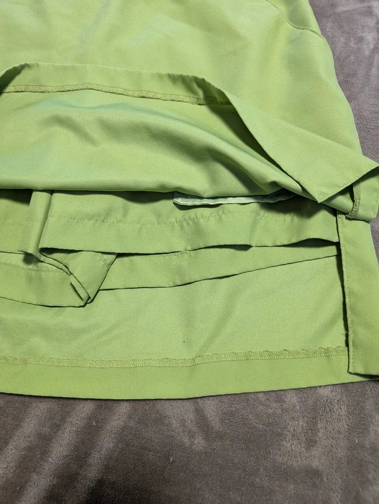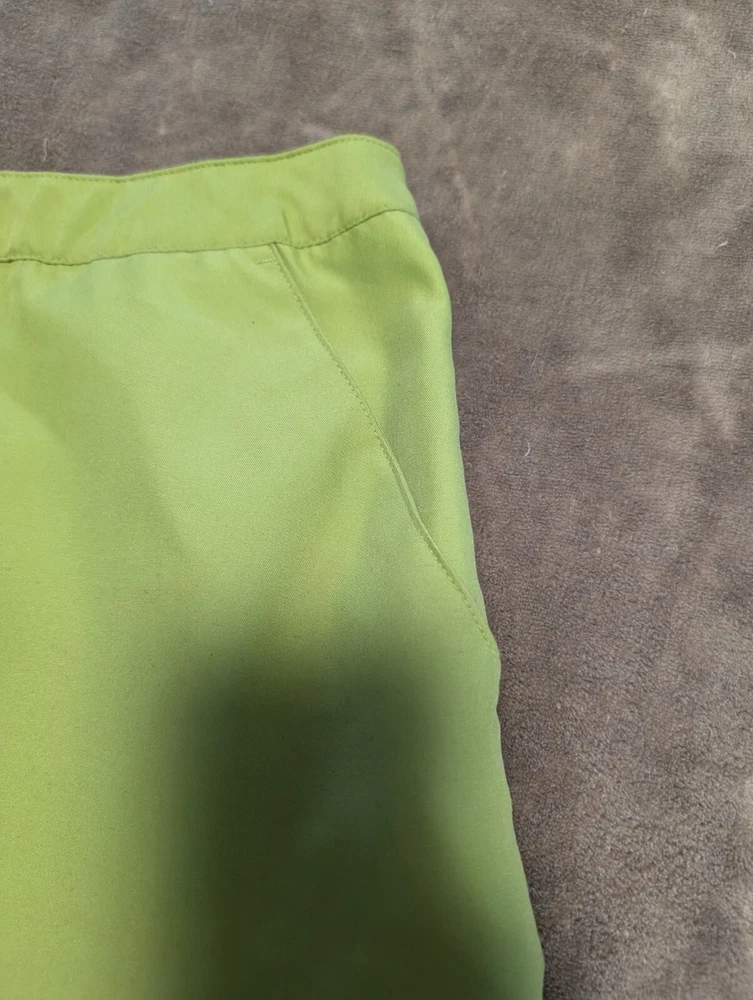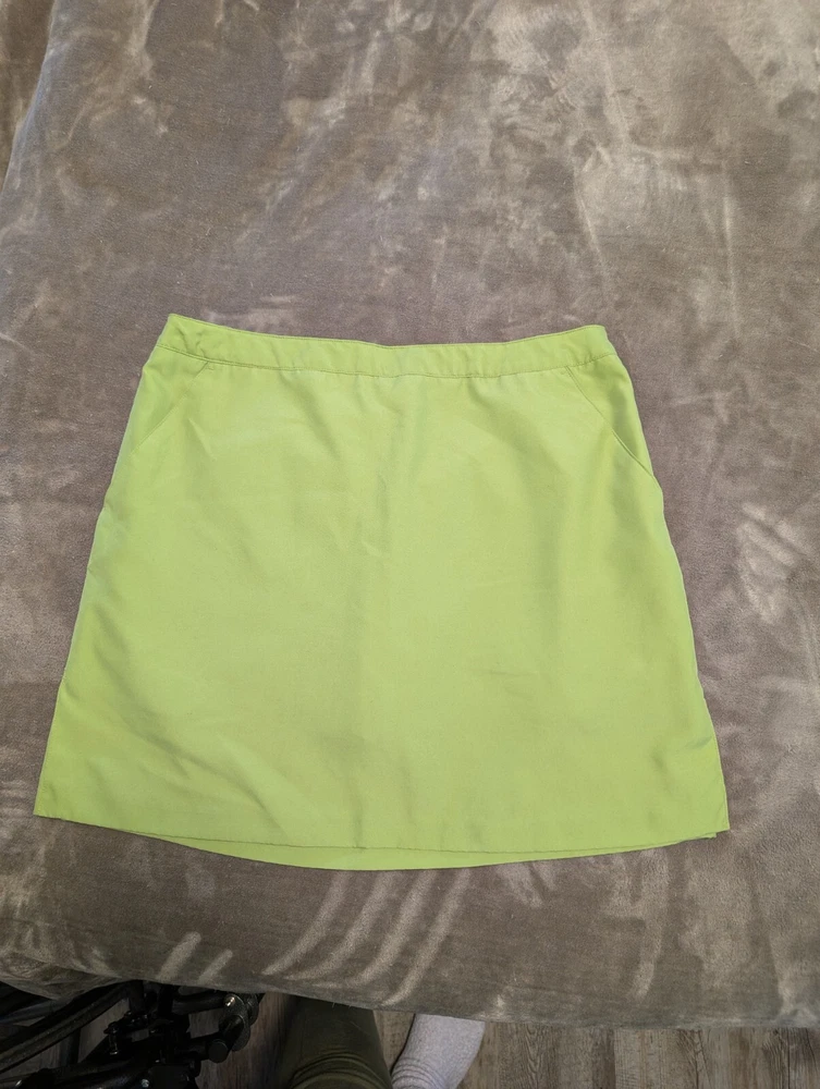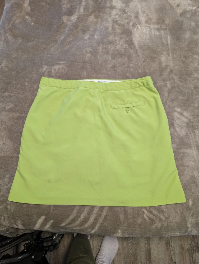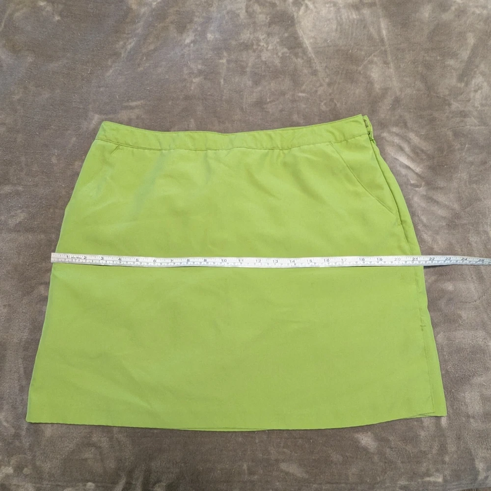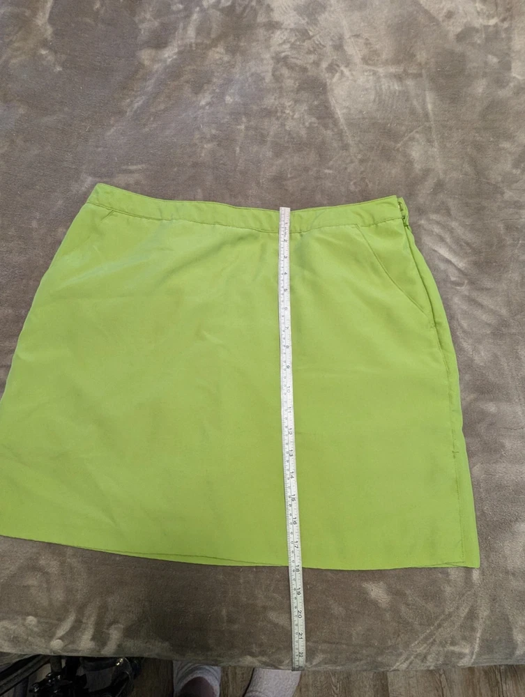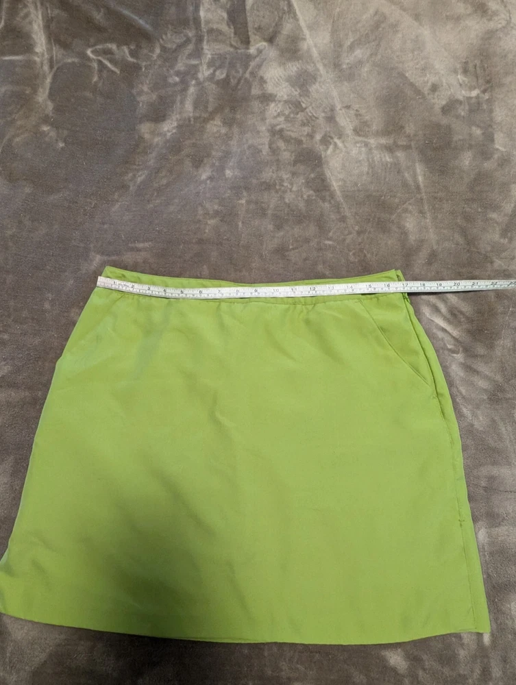 Ladies Athleisure Skort Lime Green color and perfect for spring and summer fun. Features skirting with slits for comfort. Side pockets and a button welp pocket on the back side. Pull on with side zip, button and hook & bar closure. 100% Polyester Get outside and play this summer. Excellent pre-owned condition, no flaws. Size 12 - see photos for measurements. INV4908 Garment has been cleaned according to care label instructions and is compliant with eBay used clothing policy.