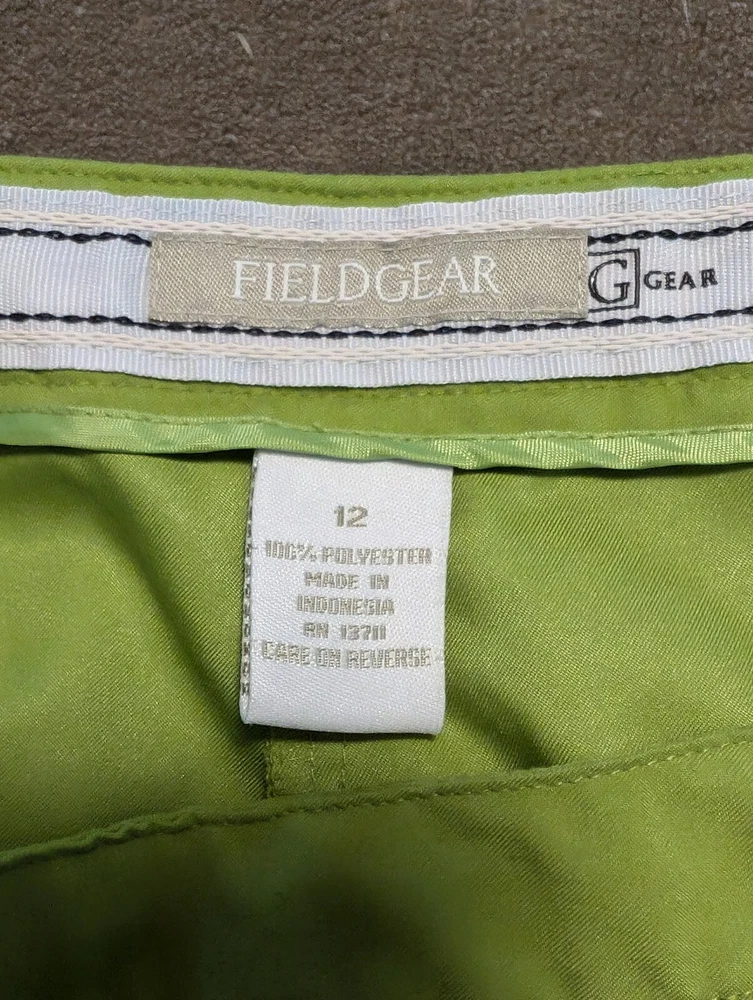 Inventory Number: 4908 Closure: Zip Department: Women Fabric Type: Microfiber Garment Care: Machine Washable Country/Region of Manufacture: Indonesia Fit: Classic Pattern: Solid Waist Size: 34 in Occasion: Activewear Color: Green Skirt Length: Short Brand: Field Gear Handmade: No Style: Athletic Size Type: Regular Type: Skort Size: 12 Season: Fall, Spring, Summer Theme: Athleisure Seller Notes: “Excellent pre-owned condition, no flaws.”