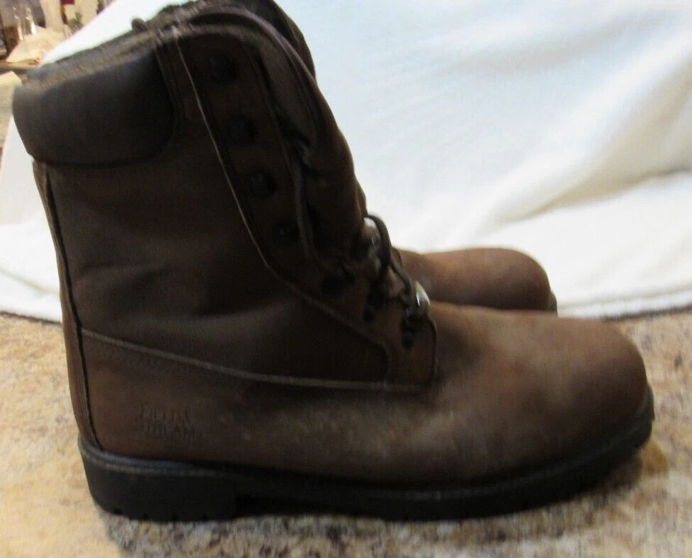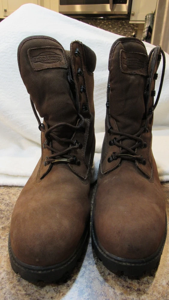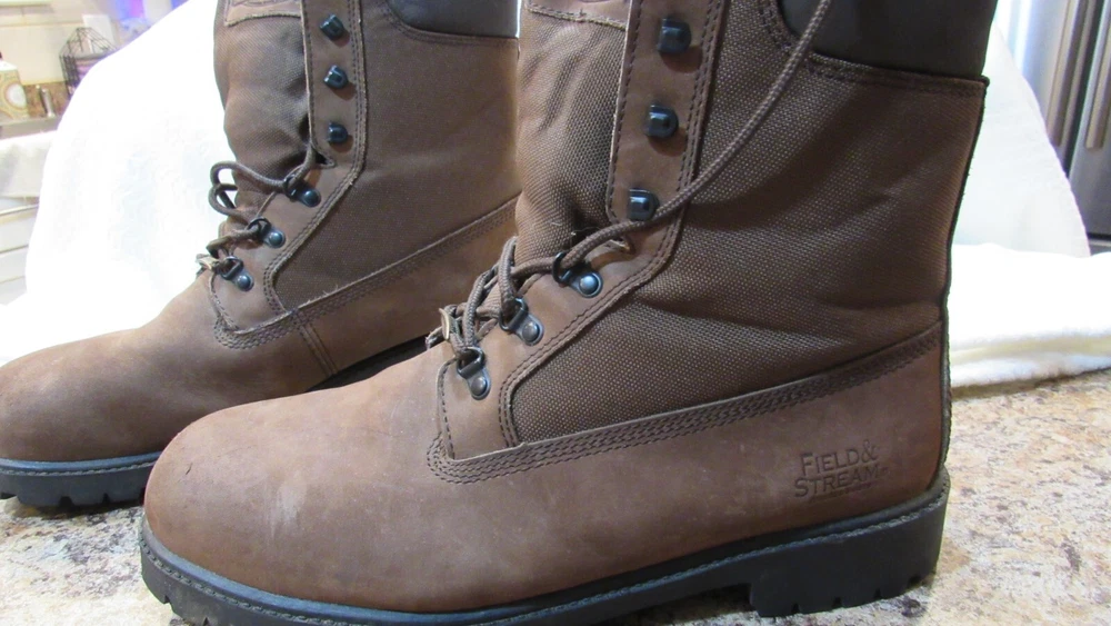 These Field & Stream hunting boots are the perfect addition to any adventurer's wardrobe. With a sturdy leather upper and comfortable fit, these boots are sure to provide the support and protection you need for any hunting or hiking trip. The brown color and solid pattern make them a stylish choice for any outfit, while the UK shoe size of 12 and US shoe size of 13 ensure a perfect fit. The boots are designed for men and feature a hunting-specific style, making them perfect for any hunting theme. The shoes are made by the trusted brand Field and Stream and are sure to provide the quality and durability you need. Whether you're out in the field or just need a comfortable and stylish pair of boots, these are the perfect choice.