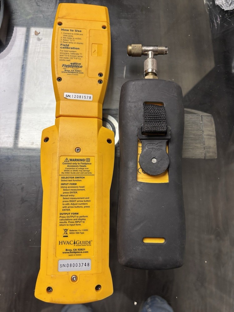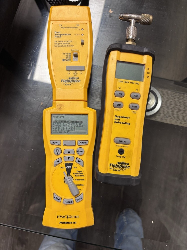 The Fieldpiece HVAC Tool Lot HG1 includes a Superheat Subcooling Calculator specifically designed for use with R22 and R410A refrigerants. This kit, which consists of two units, is a valuable tool for HVAC professionals in the industrial and commercial sectors. The Fieldpiece brand is known for producing high-quality products in the field of HVAC and refrigeration, making this tool lot a reliable choice for those in need of specialized equipment for their projects.