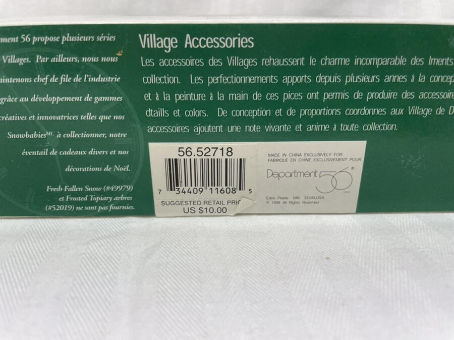 FIELDSTONE ENTRY GATE Dept 56 Snow Village Accessories 52718 Mint Condition Retired "FIELDSTONE ENTRY GATE" Dept. 56 Snow Village Accessories Item #56.52718 Introduced 1998 and retired 2001 Mint condition piece in original box & sleeve For indoor use only approx 6" long I will be listing a large collection of Christmas Villages, most are Dept 56 and I will have some Lemax also. I have many pieces that are still new never opened and others that were displayed once or twice for a few days. Please check out my other listings! Please email me with any questions. I will respond back quickly. I describe item conditions to the best of my ability and will always point out any flaws or defects that I am aware of. I am an EBay Seller with 100% Positive Feedback! Thank you. Bid with Confidence! See my other listings for more great items! Because I have had a slew of non paying and very slow paying bidders lately I will require payment within 2 days of the end of auction. However, if you need a different arrangement I will be more than happy to work with you, just let me know. INTERNATIONAL BUYERS ARE RESPONSIBLE FOR ALL CUSTOMS CHARGES, PORT CHARGES OR ANY TAXES DUE UPON RECEIPT OF THEIR PACKAGE. All my shipping charges include delivery confirmation. International shipping will be at actual cost. Thank you for bidding on my auctions. Your business is very much appreciated! txzj pxzj8515 txzj-11 txzj44 txzj115