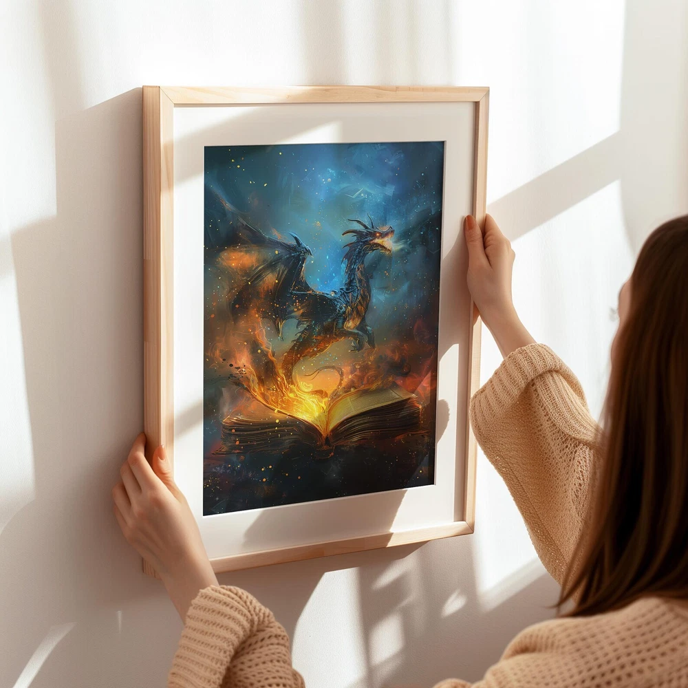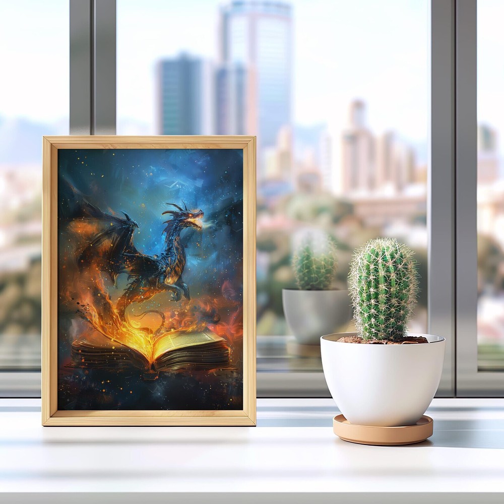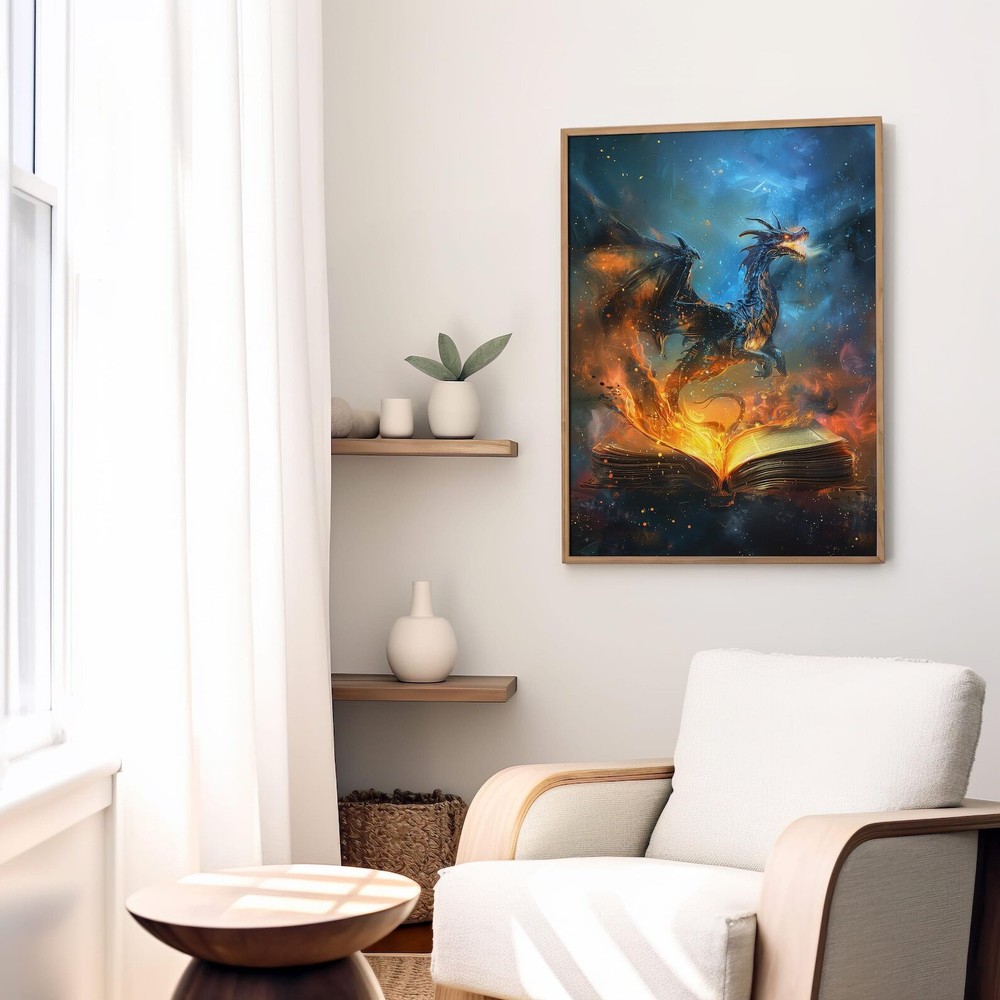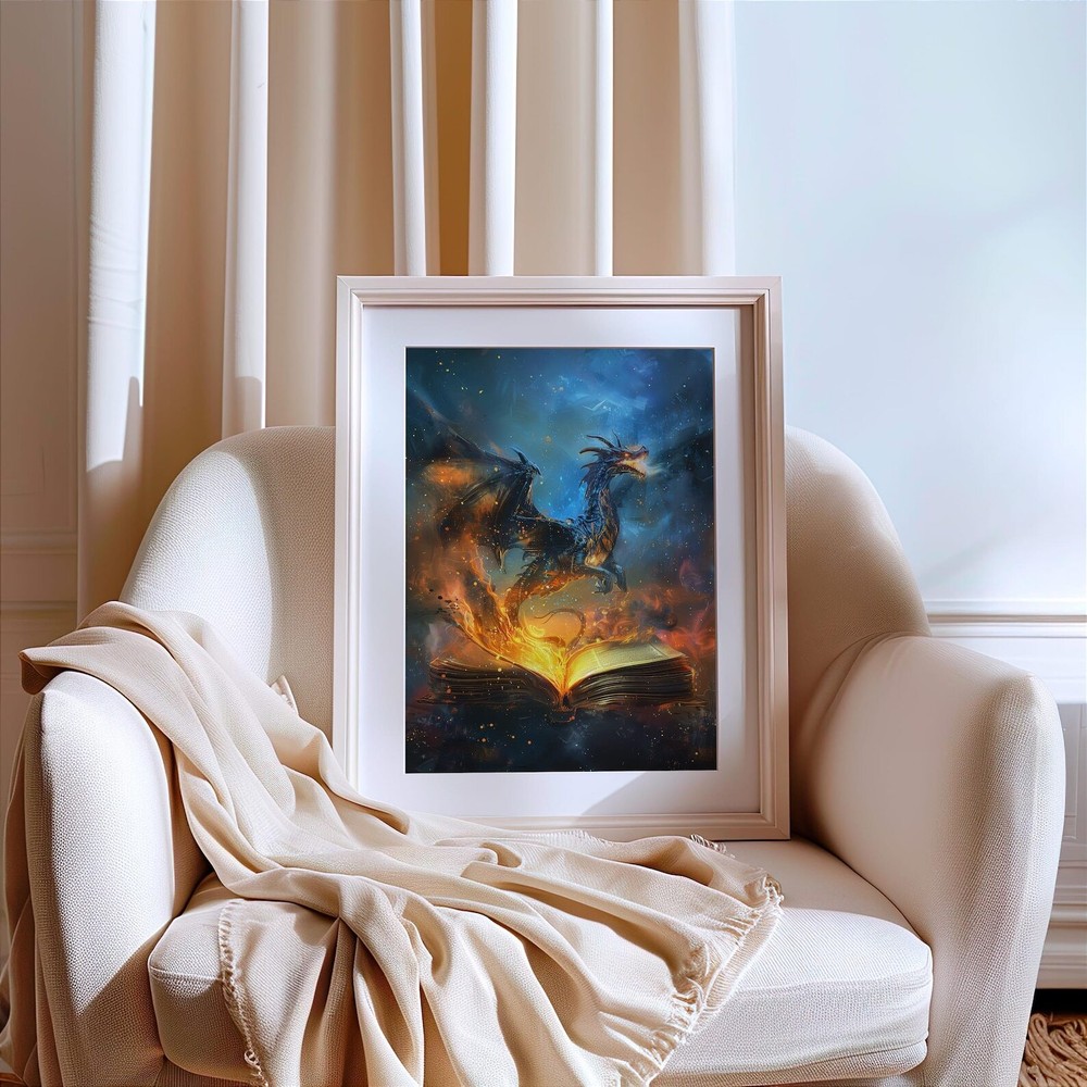 Fiery Dragon Fantasy Art Print Magical Book Lover's Decor Enchanting Wall Art Material: Premium luster photo paper Print type: Inkjet printing One side printed + The finish provides the highest possible resolution and color saturation + Lasts up to 200 years in color and 400 years in black-and-white + Printed on high-quality resin-coated photo base paper medium + Posters can be hung with double-sided tape, tacks, or framed + Hand washing with a gentle cry cloth is recommended for extended durability I will hand select the best choice of paper for your chosen design to ensure top quality results for a beautiful, bright and luxurious print. All prints are sealed in cellophane slips for protection during transportation, and are shipped in a protective cardboard envelope.