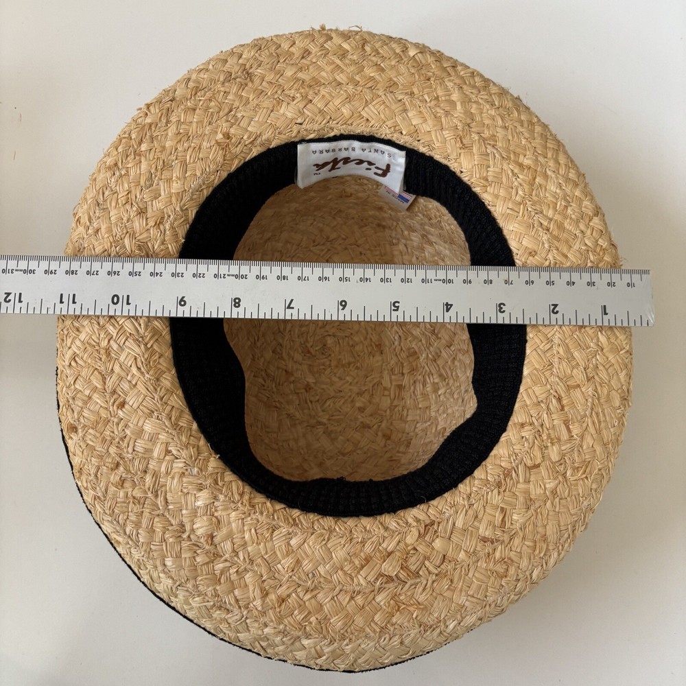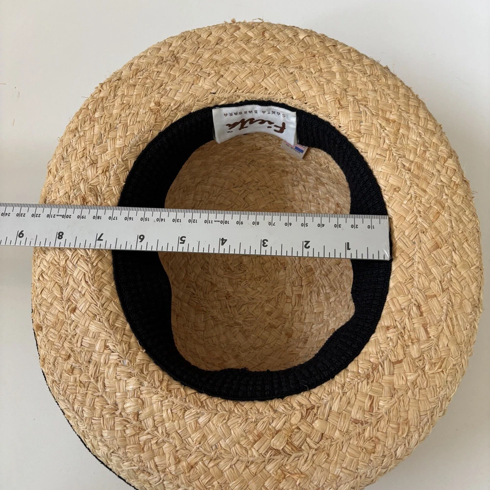 Fiesta Santa Barbara Made in the USA Raffia Straw Ladies Hat Cottage Core Black Cotton Band COLOR Natural Straw SIZE One size This item ships within 2 business days. PRODUCT DETAIL High quality Elastic cotton inside band Black cotton hat band and edge banding CONDITION Pre-owned FLAWS No visible wear Do you have a question about item? Message us and we will get back to you ASAP. We’d love to ship this item to you soon!