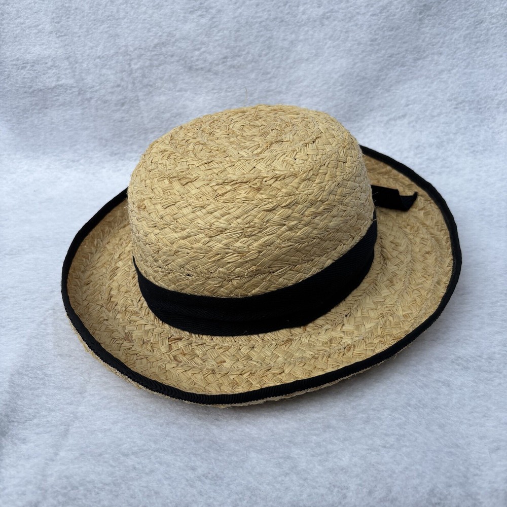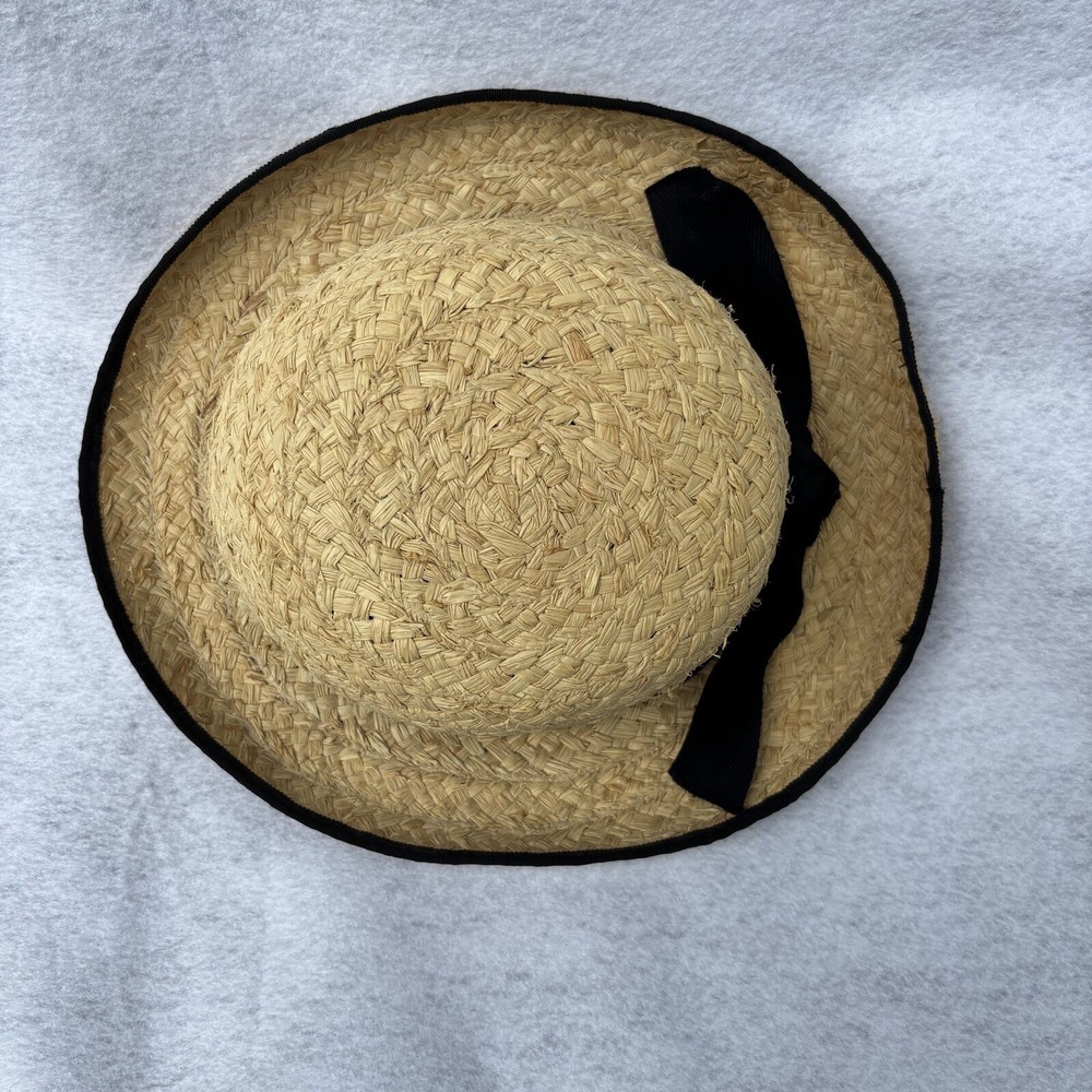 Fiesta Santa Barbara Raffia Straw Ladies Hat Cottage Core Black Cotton Band USA