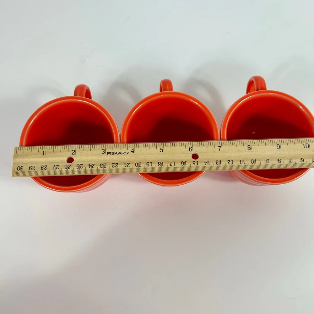 Brand: Fiesta Features: Bright orange color. I believe it’s called “poppy”. Set of 3 Condition: Excellent preloved condition Size: Measurements are in the photos.
