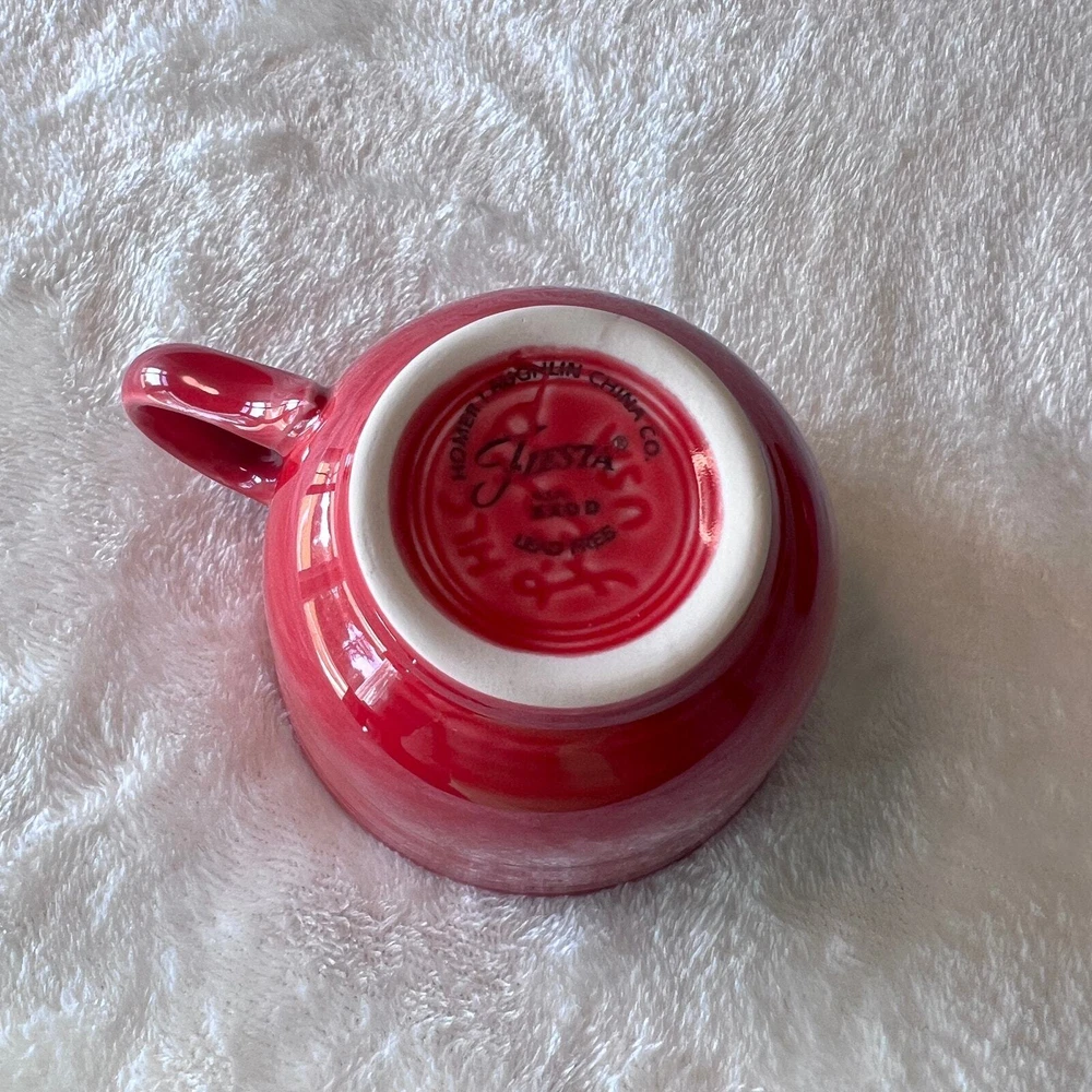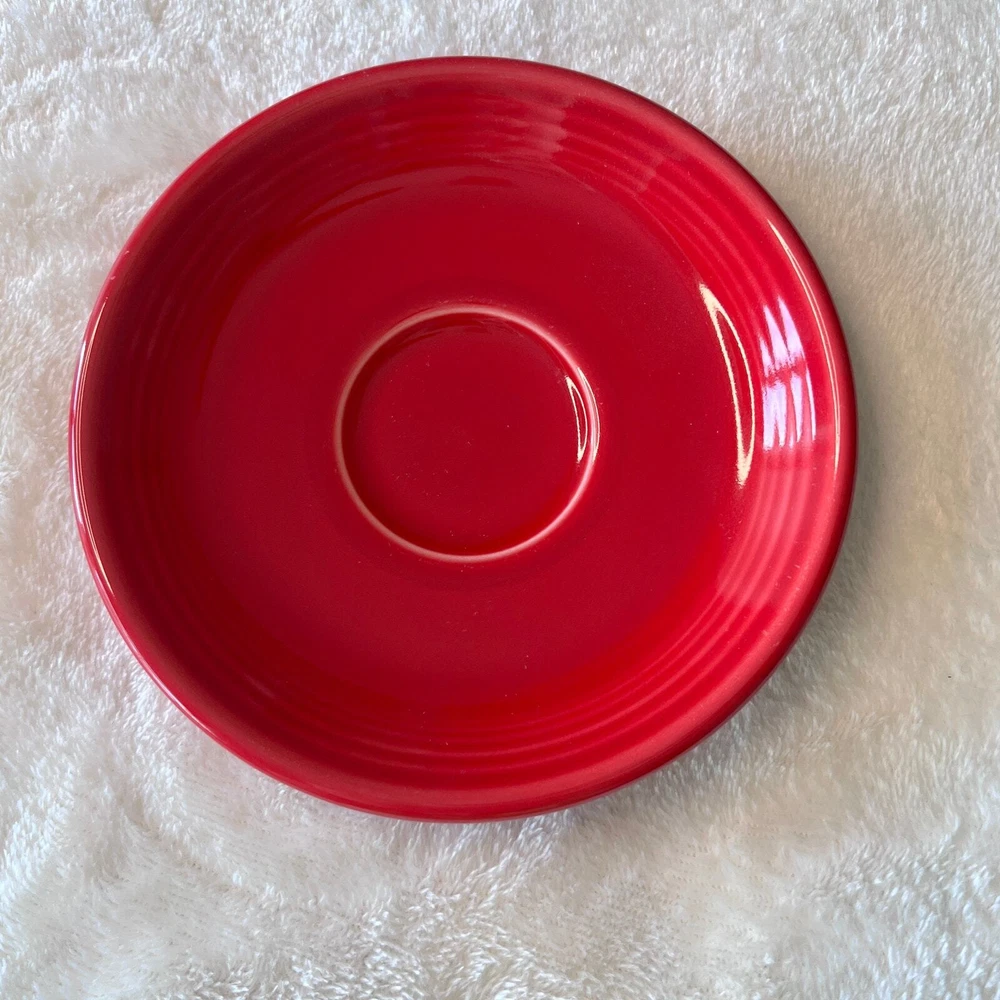 Fiestaware Scarlet Teacup & Saucer Color: Scarlet Red Contemporary - Post 86 Homer Laughlin China Co. Fiesta Ware Pottery Classic 7 3/4 oz Tea Cup Height: 2 3/4 in Width: 3 1/2 in Holds 7 Ounces Classic Rim 5 7/8 Inch Saucer Diameter 5 7/8" Height 7/8" Only fits the Cup () Dishwasher, oven, and microwave safe Fully vitrified lead-free china with a color glaze Made in the USA Pre-Owned in Excellent Condition (EUC) *Colors may vary depending on lighting and individual viewing devices Offers Welcomed Bundle Discounts Available Fast Shipping 5 Star Seller Thank you for shopping my closet! Fiestaware, Teacup & Saucer, Fiesta, Pottery, Collectible, Vintage, Tea Cup, Coffee, Java, Value increases, Collector