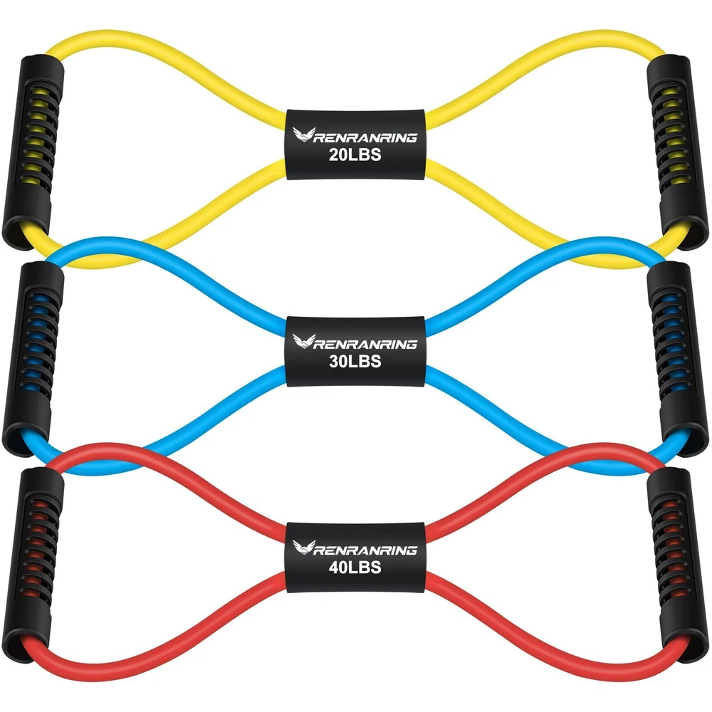 Figure 8 Fitness Resistance Bands with Handles - Exercise Tube Band Set of 3 ...