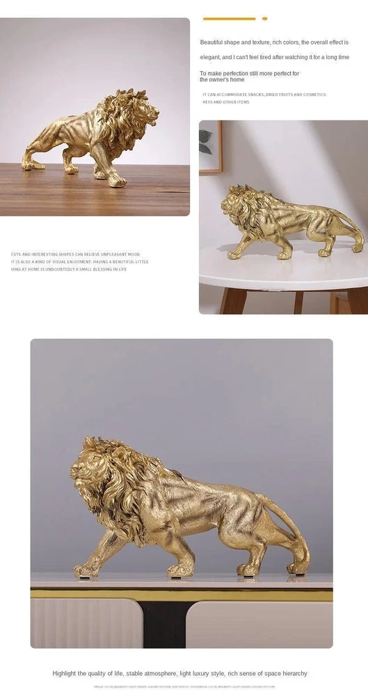 Free and fast shipping , shipping take up 1-7 Business Days 30 Day Return Accepted EASY PAYMENT via PayPal, Credit Card, PayPal Credit, Google Pay... Figurine Animal Lion Novelty Resin Carved Medium Modern Gold Free Stand Decor After Sales Service - Any questions, please feel free to contact us. Don't hesitate, we are happy to help with even the smallest question or concern. If the product is damaged during transportation, please contact us before opening a dispute, we will give you a satisfactory solution, thank you! Dimensions: as picture shown Material: Resin Application: living room/bedroom/office etc. Packing: carton packing Processing Time: Shipped within 24 hours Our quality is strictly inspected and can be guaranteed, while handicrafts cannot be 100% perfect, there may be very slight dents/bumps, please understand. Thank you so much! After-sales policy: no reason to return or exchange goods within 15 days Choose an art ornament to decorate your home, let you have a pleasant experience every day, and make your daily life full of ritual Finely crafted from selected resin materials The creative three-dimensional shape, strong body and full of masculine beauty make the whole product more artistic. The lion is the embodiment of wisdom and strength, with the meaning of auspiciousness, prosperity and endless life, symbolizing status, dignity and peace. On Dec 22, 2024 at 01:41:40 PST, seller added the following information:
