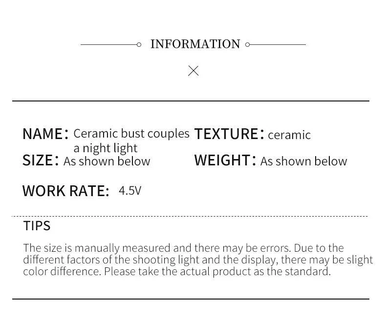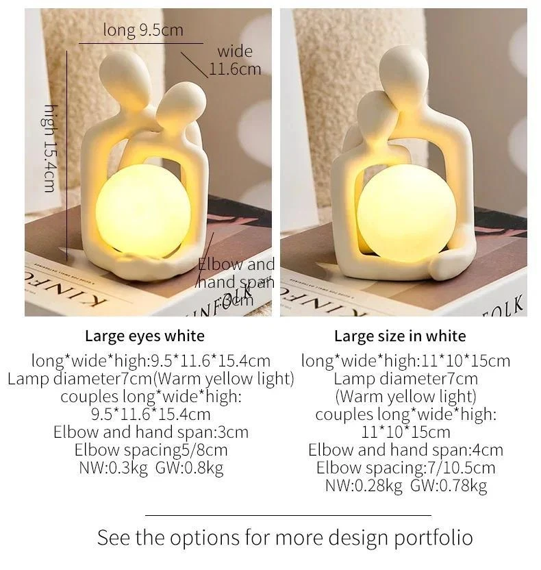 Free and fast shipping , shipping take up 1-7 Business Days 30 Day Return Accepted EASY PAYMENT via PayPal, Credit Card, PayPal Credit, Google Pay... Figurine Couple Lamp Multicolor Resin Romantic Small Carved Free Stand Decor Material:Ceramic+PVC ball Size: Please see the picture or ask the seller Function: home decoration, gift giving Applicable scene:living room, bedroom, office Packing:box + bubble bag + foam filling (very safe packaging) Buyer Protection: ① A full refund for damaged products. ②No reason to return within 15 days. ③60-day buyer protection, money-back guarantee. (Subject to AE notice) About the store 1. The package uses a bubble column which is very strong and striking. 2. There are high-quality logistics partners to ensure packages are on time (some packages cooperate with official logistics) 3.If you receive damage to items, please don't negative comment, you can contact online customer service, provide photos, verify it, reshipment for you 4. If you find that something is missing, you can contact online customer service. After checking the weight, if anything is missing, you can spend it again for free. 5. If logistics has not updated new information for a long time, you can directly contact online customer service to solve it for you. Do not claim disputes directly. Thank you for your understanding. 6. The outer layer uses black packing bags or yellow adhesive tape for privacy in terms of packaging, me and my little friends are very careful! REVIEWS The product came very well packaged. I'm very happy. thank you for everything. Seller strongly recommended. This is great! I definitely recommend! Product looks amazing Delivery was fast. Excellent seller, great communication. I advise everyone to buy it!