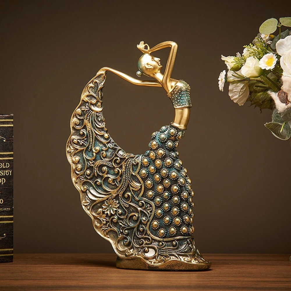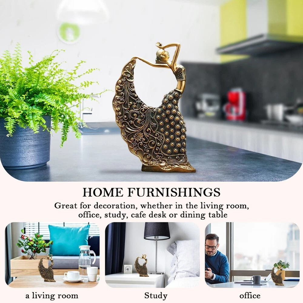 Figurine Modern Art Home Decor Peacock Dancer Statue Stylish Design Vintage Feature: 1. Durable Material: Lady Sculpture uses resin material, with a delicate texture and natural color. The design is realistic, with deep and beautiful eyes, and the design is lifelike. 2. Fashion Design: Vintage Dancer Figurines has a simple and fashionable design, with diverse and beautiful colors. It is a proper decorative decoration for the living room or study. 3. Kind Gift: No matter who you give Beauty Statue to, it will always be a sweet gift and a huge surprise. Personalized decoration seamlessly blends with most home decor. Place it in a place you like, such as bookshelf, fireplace rack, TV cabinet, bedside table, table, desk, etc. 4. Good Decorations: Exquisite Resin Peacock Dancer Handicraft design with bright and pleasing colors. Can become a good decoration for your home. Give you a different feeling and a happy mood. 5. Scope of Application: Peacock Dancer Statue can be used for TV cabinets, desktops, living rooms, offices, hotels, bars, gifts, and study rooms. A lucky craft gift for colleagues, with exquisite materials, elegant workmanship, and showcasing personal taste, is the best choice for leaders and colleagues. Handmade, there may be a little flaw, perfectionism please buy carefully. Specification: Origin: Mainland China Material: resin Style: Modern Style Name:Peacock Dancer Statue Product packaging: Polylon+paper box Product size: 18 * 7 * 28.5CM/7.0*2.7*11.2in
