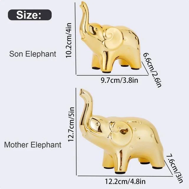 Free and fast shipping , shipping take up 1-7 Business Days 30 Day Return Accepted EASY PAYMENT via PayPal, Credit Card, PayPal Credit, Google Pay... Figurine Set 2 Animal Multicolor Modern Ceramic Decor Small Smooth Features: 1, Size: Small 9.5*9.5*4.5cm/3.74*3.74*1.77in, Large 12*11.5*5.5cm/4.72*4.53*2.16in. 2, High-quality material: The elephant is made of high-quality ceramic, waterproof and durable. The gold-coated surface makes the elephant statue more refined, and the skin details become smoother and more realistic. 3, Beautiful meaning: the elephant and the baby elephant raised their trunks as if the mother and the child were playing happily. Elephants are considered symbols of luck, wisdom, health, and loyalty. It is lucky to have this pair of elephant statues displayed at home. 4, Home decoration: This exquisite and realistic statue can beautify your personal space, it is a perfect decoration for room, office, library, restaurant, coffee shop, hotel decoration. Unique statues can beautify any room in your home, grab the attention of your guests, and show off your unusual taste and personality. You can place it wherever you like, such as bookshelves, fireplaces, TV cabinets, bedside tables, desks, etc. 5, Perfect gift: It's for animal lovers, girlfriends, family, friends, colleagues, or any special someone you can think of on weddings, engagements, Valentine's Day, anniversaries, birthdays, Easter, or Mother's Day Perfect gift. Specifications: Material: Ceramic Size: Small: 9.5*9.5*4.5cm/Large: 12*11.5*5.5cm Color: picture color Package Included: 1 pair * elephant statue home decor Dear buyers, we appreciate your business, if you are satisfied with our service, please leave us a positive feedback and rate the details of the transaction (Detailed Seller Ratings) with a ''PERFECT 5 STARS''. If you have any problems, broken, quality problems, please don't worry, and don't leave bad feedback. Please send us an email first, we will reply you as soon as possible, please allow us to respond within 12 hours. We understand your mood, and will provide you with the best solution for your problem, please give us the opportunity to solve the problem, For any case,please feel free to come to us,we are always here. look forward to and thank you for your trust. REVIEWS The product came very well packaged. I'm very happy. thank you for everything. Seller strongly recommended. This is great! I definitely recommend! Product looks amazing Delivery was fast. Excellent seller, great communication. I advise everyone to buy it!