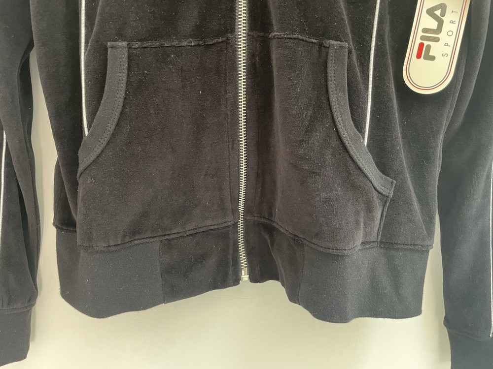 Fila Sport Women's Solid Black Velvet Cotton Blend Full-Zip Long Sleeve Hoodie M. Condition is new with tags. Smoke free, pet free home. Shipped via USPS Ground Advantage.