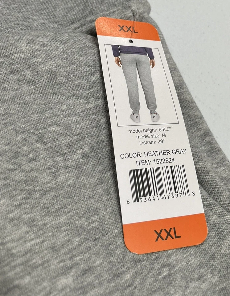 Fila Women's Heavyweight Fleece Joggers Size: 2X-Large Color: HR GRAY Features: 80% Cotton, 20% Polyester Pull On closure Machine Wash Brushed back fleece Embroidered FILA logo Two side pockets Ribbed cuffs Rib elastic waistband with drawstring cord