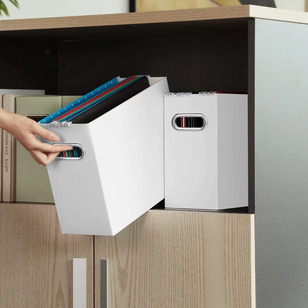 Oterri File Organizer, Small Storage Box, Cardboard File Folder Organizer, Collapsible File Box, Hanging File Organizer for Letter Size, Portable File Box with Handle, Only Box(White,2 Packs) Well-made Material: Letter file boxes are made of upgraded heavy cardboard, durable and reusable. Metal handle design, easy to carry.(Folder not included) Letter Size: The document box is 12.2x5.3x9.8 inches, designed specifically for letter (not including folders), but is not limited to folders, but can also store notebooks, magazines and other paper documents. Compact design, categorize items. Easy to Install: Hanging file organizers packaging comes with a manual that can be folded in just 30 seconds.Simply fold when not in use to save space. Coverless design for easy label identification, document positioning and improved efficiency. Widely Used: Small storage box can be placed on your desktop for use to organize your desk and keep your desk neat and organized. It is good assistant for hanging storage folders, suitable for office, home and school. Good After-sales Service: Oterri is committed to giving our customers a good shopping experience, focusing on the storage products market.Your suggestions will have a great impact on the upgrade of our products. Shipping We offer FREE shipping on all orders! We ship within Three business days of payment, usually sooner. We use a selection of shipping services such as UPS, FedEx, USPS etc. We only ship to the lower 48 states, no APO/FPO addresses or PO Boxes allowed. Local pickups and combined shipping options are not provided at this time. Return You can return a product for up to 30 days from the date you purchased it. Any product you return must be in the same condition you received it and in the original packaging. Please keep the receipt. Payment We accept payment by any of the following methods: PayPal Please pay as soon as possible after winning an auction, as that will allow us to post your item to you sooner! Feedback Customer satisfaction is very important to us. If you have any problem with your order, please contact us and we will do our best to make you satisfied. Contact Us If you have any queries, please contact us via ebay. We usually respond within 24 hours on weekdays. Please visit our eBay store to check out other items for sale! Thank you for shopping at our store.