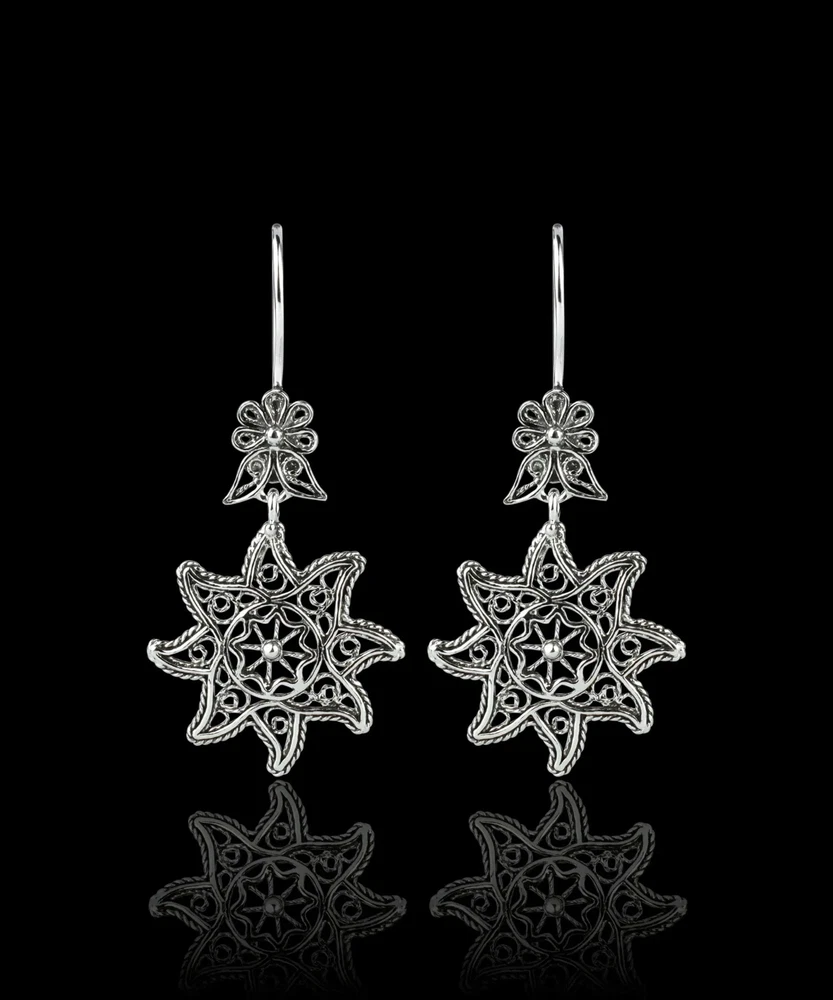 Looking for a stunning pair of earrings that will elevate any outfit? Look no further than these Filigree Art Star Figured Women Sterling Silver Dangle Drop Earrings. These earrings are handcrafted from high-quality 925 sterling silver and feature intricate filigree art detailing. The star design adds a touch of glamour and sparkle, making these earrings the perfect accessory for any special occasion or evening event. The drop style of the earrings creates a bold and striking look that is sure to turn heads. They are lightweight and comfortable to wear, so you can keep them on all night long. These earrings make a great gift for any fashion-forward woman in your life or a special treat for yourself. They come in a beautiful velvet pouch, making them easy to store and perfect for gift-giving. Filigree Art is an ancient jewelry-making technique that involves twisting and bending thin strands of metal into intricate designs. It is a timeless art form that adds elegance and sophistication to any piece of jewelry. These earrings are a perfect example of the beauty and craftsmanship of Filigree Art. Order now and add a touch of sophistication to your jewelry collection with these gorgeous Filigree Art Star Figured Women Sterling Silver Dangle Drop Earrings.