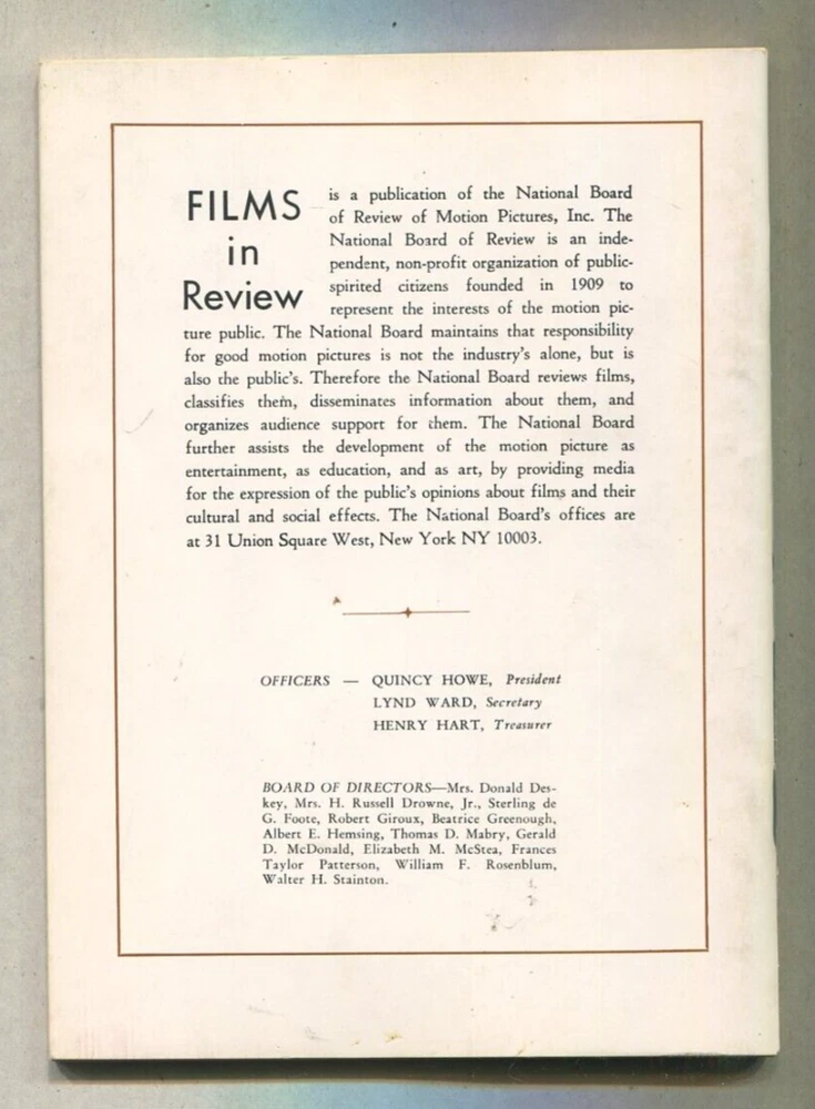 Topic:CelebritySeller Notes:“very good”Publication Year:1968Language:EnglishCountry/Region of Manufacture:United StatesPublication Month:JunePublication Name:Films In ReviewUPC:Does not applygtin13:Does not apply