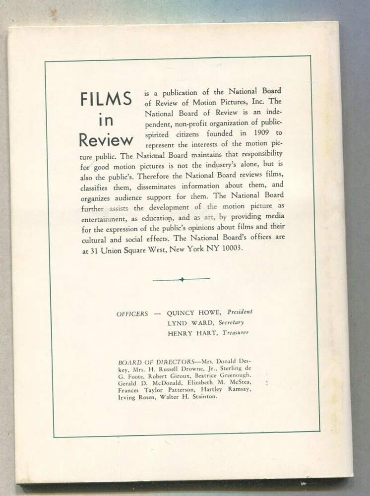 Publication Month:JuneTopic:CelebrityPublication Name:Films In ReviewLanguage:EnglishUPC:Does not applyCountry/Region of Manufacture:United StatesSeller Notes:“very good”gtin13:Does not applyPublication Year:1970