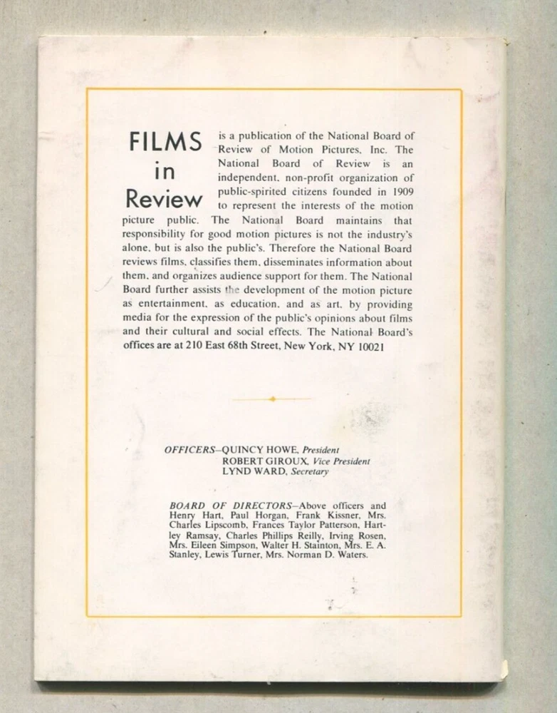 Publication Month:JuneSeller Notes:“very good”Country/Region of Manufacture:United StatesPublication Name:Films In ReviewPublication Year:1975UPC:Does not applyLanguage:EnglishTopic:Celebritygtin13:Does not apply