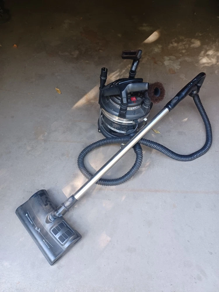 This Filter Queen canister vacuum is a powerful and efficient cleaning machine. With a voltage of 120V, it is perfect for portable and carpet cleaning needs. The bagless design ensures easy disposal of dust and debris. This vacuum comes with attachments and a hose, making it easy to clean all types of surfaces. Its corded design allows for uninterrupted cleaning sessions. Made in the United States, this vacuum is a reliable and durable choice for any cleaning task.