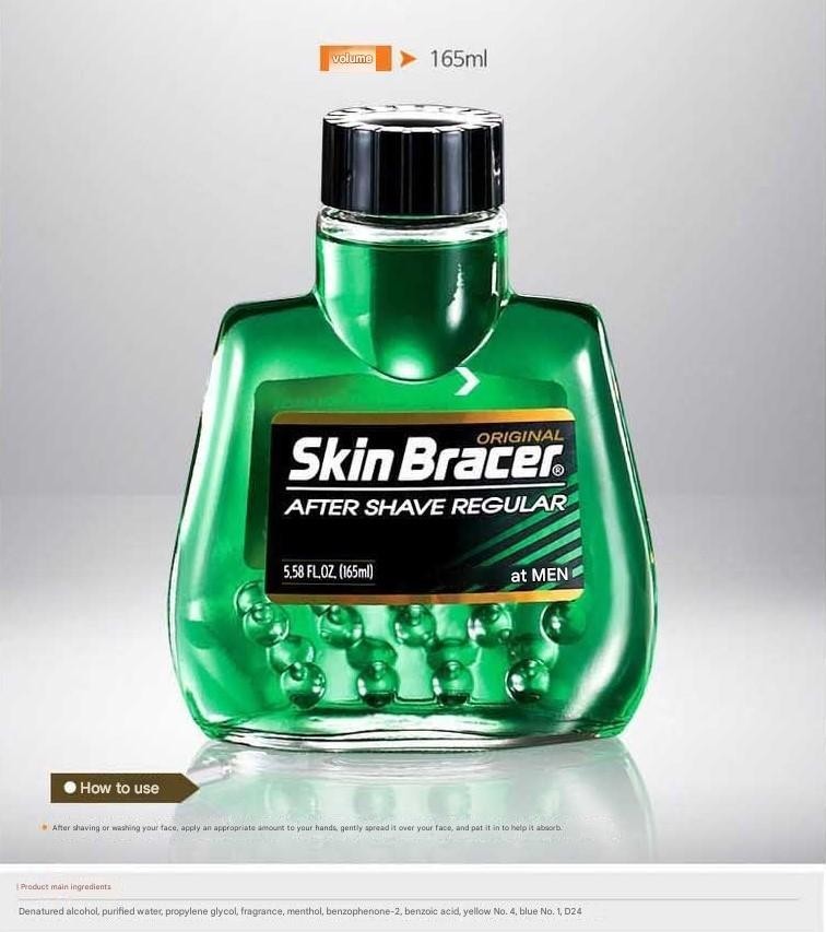 Skin Bracer® Original After Shave – Twin Pack (2 × 165 mL / 5.5 fl oz) Classic, cool, barbershop-fresh. Why you’ll like it Instant post‑shave refreshment – the signature Skin Bracer cooling splash helps calm the feel of razor burn and tightens the feel of skin after shaving. Iconic barbershop scent – a clean, masculine blend with cool mint/green citrus up top, aromatic spices in the heart, and a soft woody‑musk finish. Quick‑dry, no‑residue formula – leaves skin feeling fresh, not sticky. Travel‑friendly plastic bottle – lightweight, shatter‑resistant PET for gym bags and trips. Easy, economical value – convenient twin pack so you’re stocked at home and on the go. By MENNEN – the timeless after‑shave splash guys have trusted for generations. Scent profile Top: cool mint, green citrus Heart: aromatic spice, herbaceous notes Base: soft woods, musk How to use Rinse and pat skin dry after shaving. Splash a small amount into palms and apply to the shaved area. Use daily for that crisp, freshly shaved finish. (Can also be used as a light body splash.) Who it’s for Men who enjoy a classic, invigorating barbershop fragrance. Normal to oily skin types, or anyone who prefers a quick‑dry splash after the blade. What’s in the box Skin Bracer® Original After Shave – 2 bottles , 165 mL (5.5 fl oz) each . Safety & care For external use only. Avoid contact with eyes. Flammable until dry—keep away from flame, heat, or while smoking. Keep out of reach of children. Store tightly closed, cool and upright. Give your morning shave the classic finish— cool, clean, confident —with Skin Bracer Original.