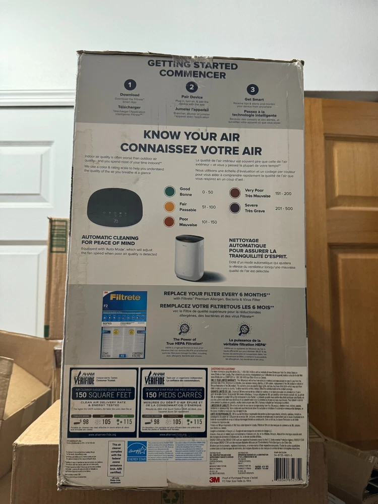 Filtrete Smart Air Purifier & Air Quality Monitor for Large Rooms, up to 310 sqft, Alexa enabled, Wi-Fi Simple Setup, True HEPA Filter for Allergens, Dust, Bacteria, & Viruses, Alexa smart reorders Condition: Open Box We apologize in advance for any variation in box condition that may occur during transit ! All items we carry are stored in a pet-free and smoke-free environment, ensuring their quality and cleanliness DESIGNED WITH AUTO-MODE to clear your air automatically, electronic touch controls, light dimmer and filter life indicator that shows the percentage left on your filter’s life INCLUDES TRUE HEPA filtration out of the box to attract and capture 99.97% of unwanted airborne particles, such as allergens, dust, lint, mold spores, bacteria, viruses and pet dander (as small as 0.3 microns, from the air passing through the filter media. Initial efficiency value) DUAL-STAGE FILTRATION: Includes two washable pre-filters to help capture larger particles. Clean every 30 days to maintain optimal device performance CHANGE FILTER when the device’s filter life indicator reaches 0% (Approximately every 6 months based on 12 hours of run time per day) WORKS WITH F1 Filtrete Filters CLEAN AIR DELIVERY RATE (CADR): 200 BACKED BY 25+ YEARS of filtration expertise Notes: Please check images before offering or purchasing. Thank you for your understanding. If you have any questions or need further information, please don't hesitate to contact us. We're here to assist you :) Shipping and handling times We strive to process and ship all orders within 1 business days of receipt. Please note that during peak periods, there may be a slight delay in processing and shipping times. Once your order has shipped, delivery time will depend on the shipping method you selected at checkout. Estimated delivery times are as follows: Standard shipping: [3-5] business days Expedited shipping: [2-3] business days Next-day shipping: [1-2] business days Please note that these are estimated delivery times and may vary based on the delivery location and other factors beyond our control. We are not responsible for any delays in delivery. Contact us We value your business and are here to help with any questions, comments, or product requests you may have. If you have any special requests or special shipping needs, please don't hesitate to contact us. You can reach out to us through eBay messages directly. We will do our best to accommodate your requests and will respond to your inquiry as soon as possible.