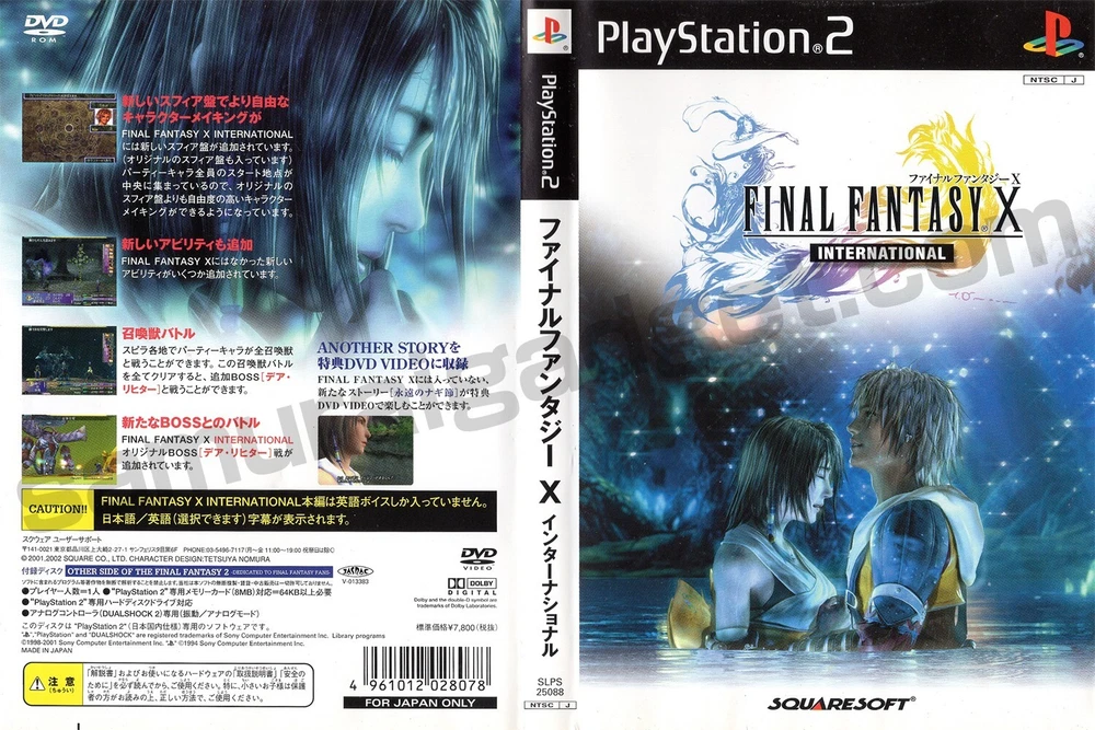 Final Fantasy X(10) International - Japanese Version - ※Region Code:NTSC-J (Japan) Description ■Product Features ・The game is a Japanese adaptation of the North American version of Final Fantasy X (10). ・All audio during the game is in English. ・You can choose subtitles in Japanese and English. ・The package includes The Other Side of Final Fantasy 2, a DVD containing the story after the ending. ■Product status:Very Good ■Product content (1)Original Package (2)Manual (3)Game Disc Payment Buyers accept a variety of payment methods including credit and debit cards, Apple Pay, Google Pay and PayPal. Shipping Shipping is Economy and Expedited and Standard. ■Economy Shipping:Free Shipping ■Expedited and Standard Shipping:FedEx or EMS and Yamato Japan(There is an extra charge.) ※Depending on the shipping area, only Economy Shipping is available. Notice ■The language of the game is Japanese. ■Platform:PlayStation 2 ■PlayStation 2 is not included. ■The region code for this game is Japan. International Buyers - Please Note: Import duties, taxes, and charges are not included in the item price or shipping cost. These charges are the buyer's responsibility. Please check with your country's customs office to determine what these additional costs will be prior to bidding or buying. If the cancellation is due to the buyer,we will charge a PayPal fee. If there is a remote charge for your address,we will charge you for additional shipping. Thank you for your understanding.