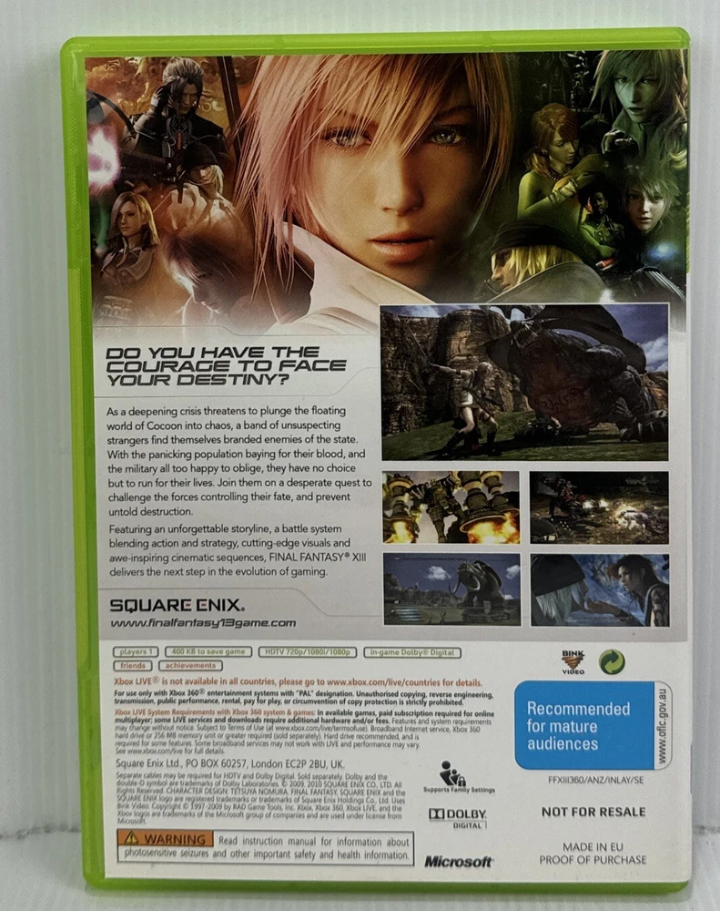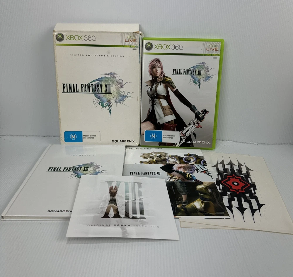 Immerse yourself in the captivating world of Final Fantasy XIII with this Limited Collector's Edition. The 3-disc set includes the game, manual, and a book, providing you with hours of adventure in the fantasy realm. Published by Square Enix and designed for the Microsoft Xbox 360 platform, this PAL version is a must-have for fans of the Final Fantasy series. Discs have scratches Box has wear & tear - see pictures
