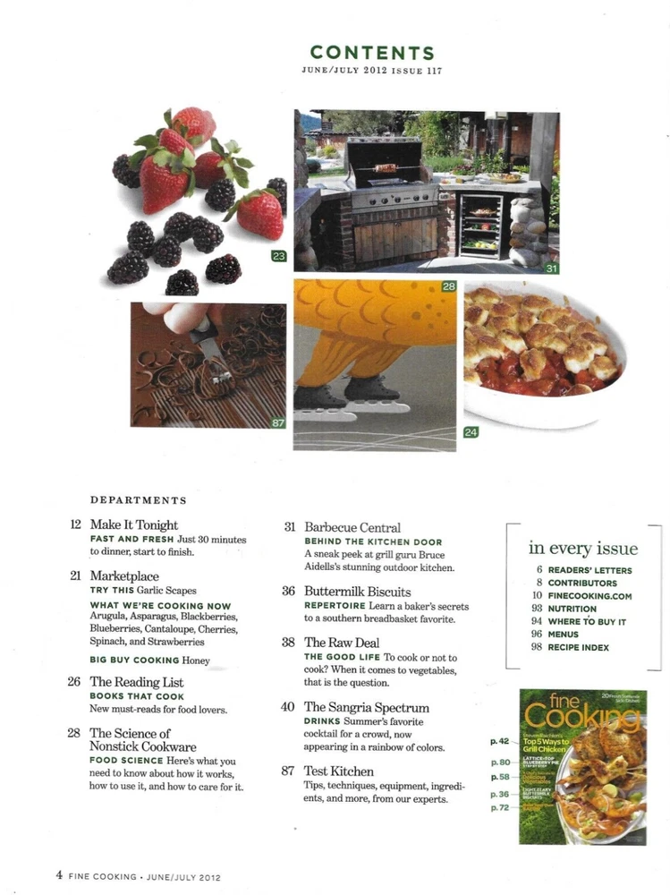 Fine Cooking Grilling chicken ALSO FEATURED: Blueberry pie Summer side dishes Buttermilk biscuits DIY bacon