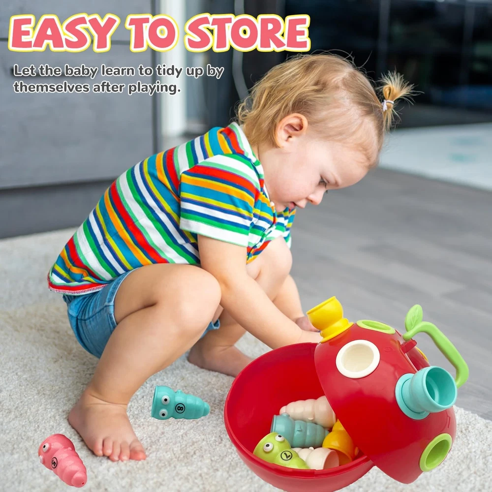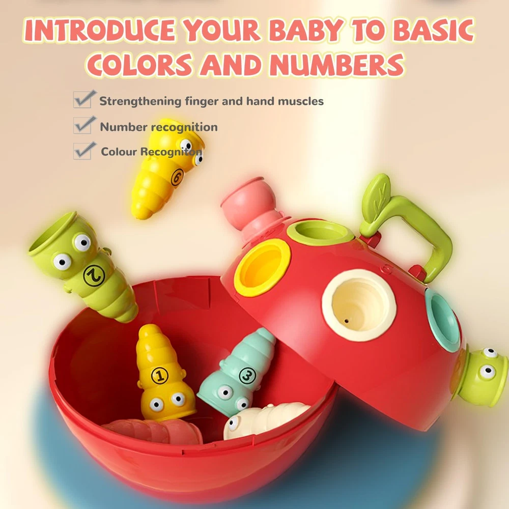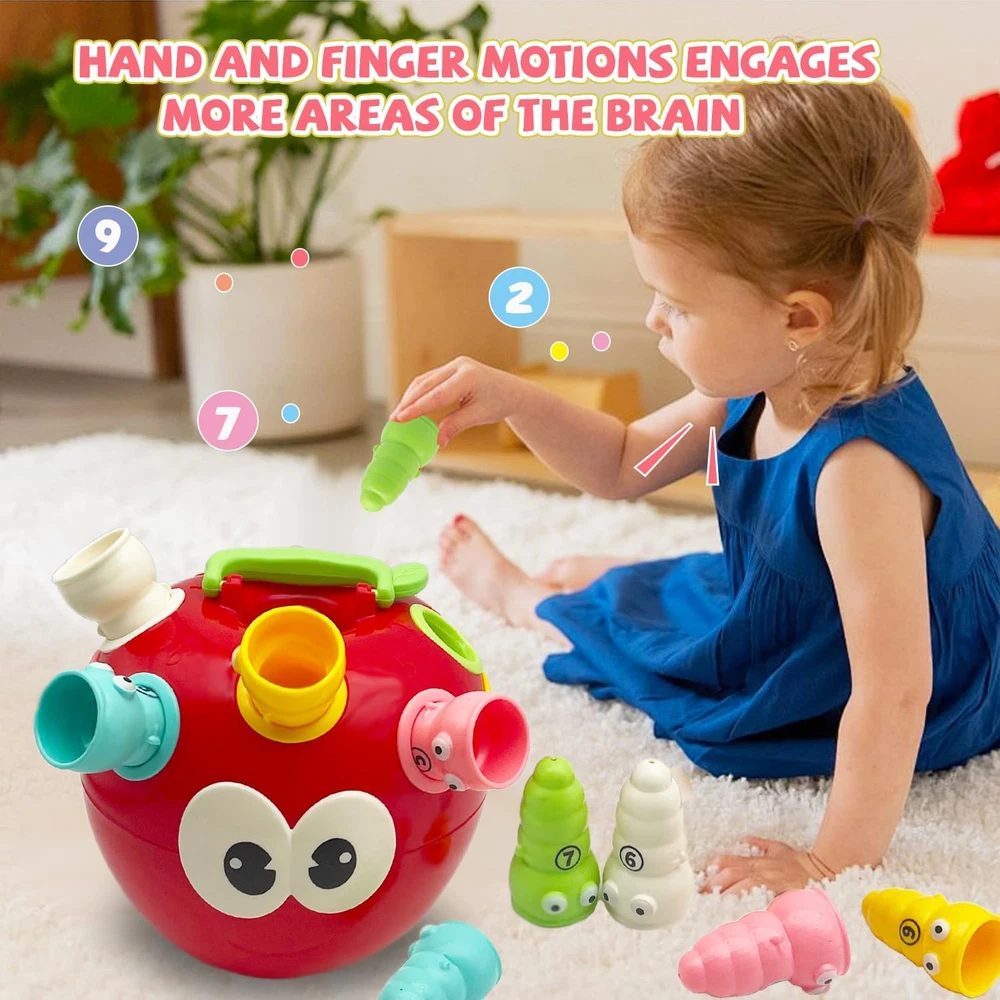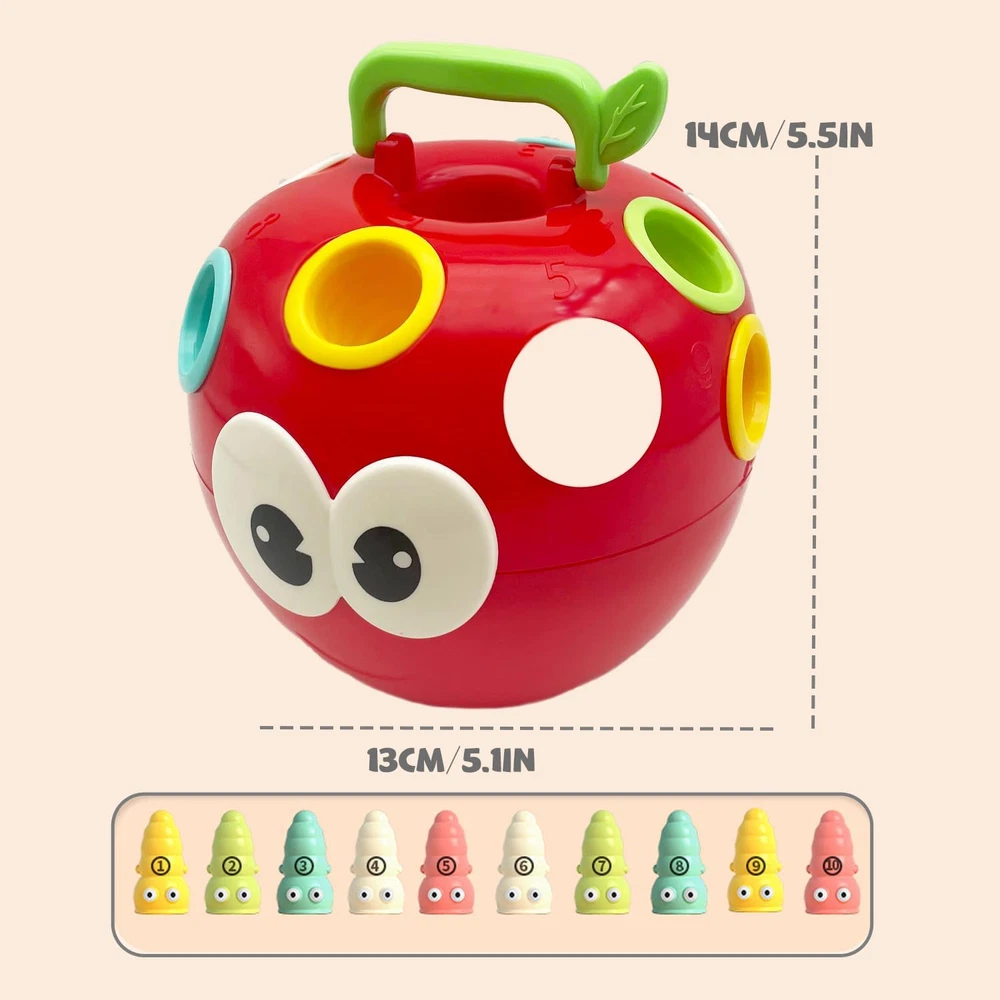 【Fine Motor Games for Kids】 - The fine motor skills toys for kids 1-3 consists of an apple with 10 caterpillars colour and number to the corresponding grooves on the back of the educational learning toys which takes some dexterity and accuracy and develops baby toddlers cognitive and fine motor finger muscles skills. Kids build color recognition, sorting and counting skills through fine motor skills games. Also use them as for occupational therapy exercises! 【Sensory toys】 - Comes with 1 apple-Shaped body and 10 caterpillars in 5 colors.The sensory 1 year old baby toys, such as the different textures and shapes, adds an extra engagement and tactile stimulation. 【Safety Material】 - Made from High quality and sturdy plastic, BPA-Free and comply with the strictest international toy standards. 【Easy Storage】 - The parts easily fit in the apple. Great for outdoor or indoor activities for toddlers. It is kids travel essential. 【Gifts for Preschooler】 - Great educational toys for toddlers 18 months and up. Ideal gift for Birthday, Christmas, Stocking Stuffers, Easter Baskets Stuffers or even for Homeschool. Product Description Baby Sensory Toys Fine Motor Skill Toys for Kids 1 2 3+ Year Old Boys Girls Do you have trouble in choosing a early education toys for Toddlers ? Our baby sensory toys will solve your problem! Develop fine motor skills by pulling out and inserting the soft spines on the back of the Hedgehog Toy! Durable spines in a variety of colors are tactile and come with "just right" grip points to strengthen small finger and hand muscles. Color Recognition Different color spines of the baby toy can enhance children's perception of color and improve children's color cognition ability. Number Recognition There are numbers 1 to 9 on the back of the montessori toy, which can satisfy the child's basic numeracy ability and also enrich the game play. Montessori Toys Learning Activities Educational Games! 1. Improve hand-eye coordination, promote intellectual development. 2. Exercising the strength of thumb and index finger. 3. Strengthen the perception of color and cultivate color recognition ability. 4. Basic number recognition, develop basic mathematical calculation skills. 5. Exercising the ability to classify and storage. 6. Develop children's imagination and memory through different ways of playing. Fine Motor Skills Arranging colorful pegs and nailing them into holes is a fine motor skill practice that helps with growth needs like grasping pencils, holding utensils, and getting dressed. Educational Toy The design of montessori toys should follow safely designed, humanity, fun, ingenuity and interactivity principles, so we developed this dinosaur Montessori Toys especially for kids Great Fidget Toy A great toy for autism as it has multiple fidget options, good for occupational therapy exercises!