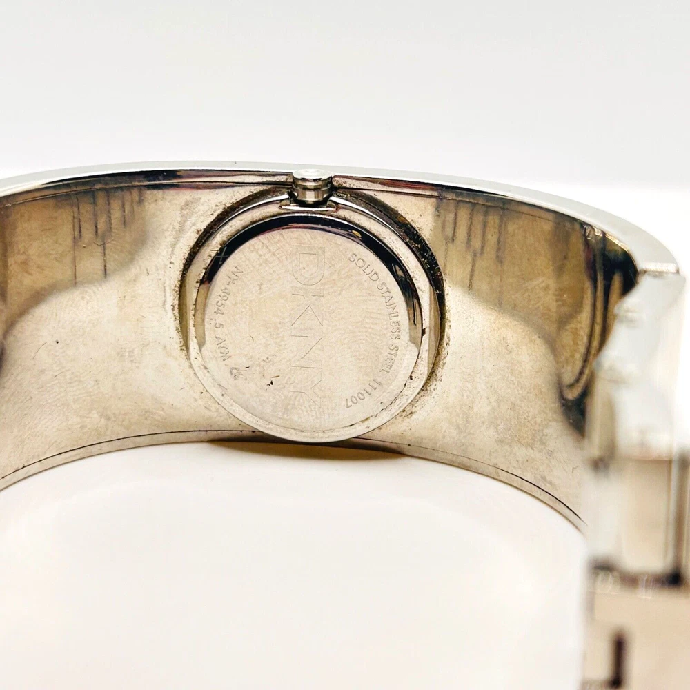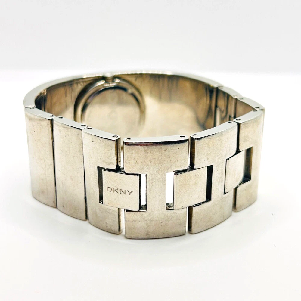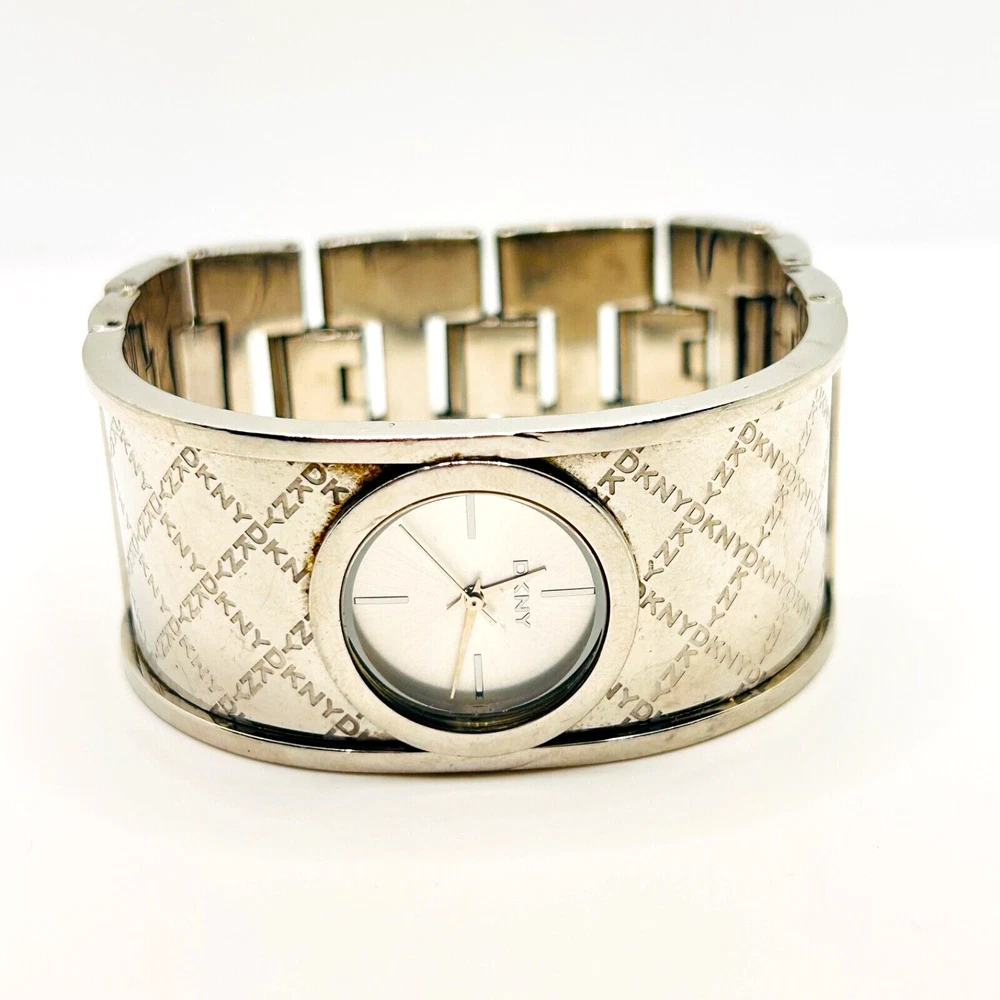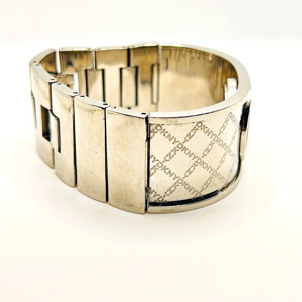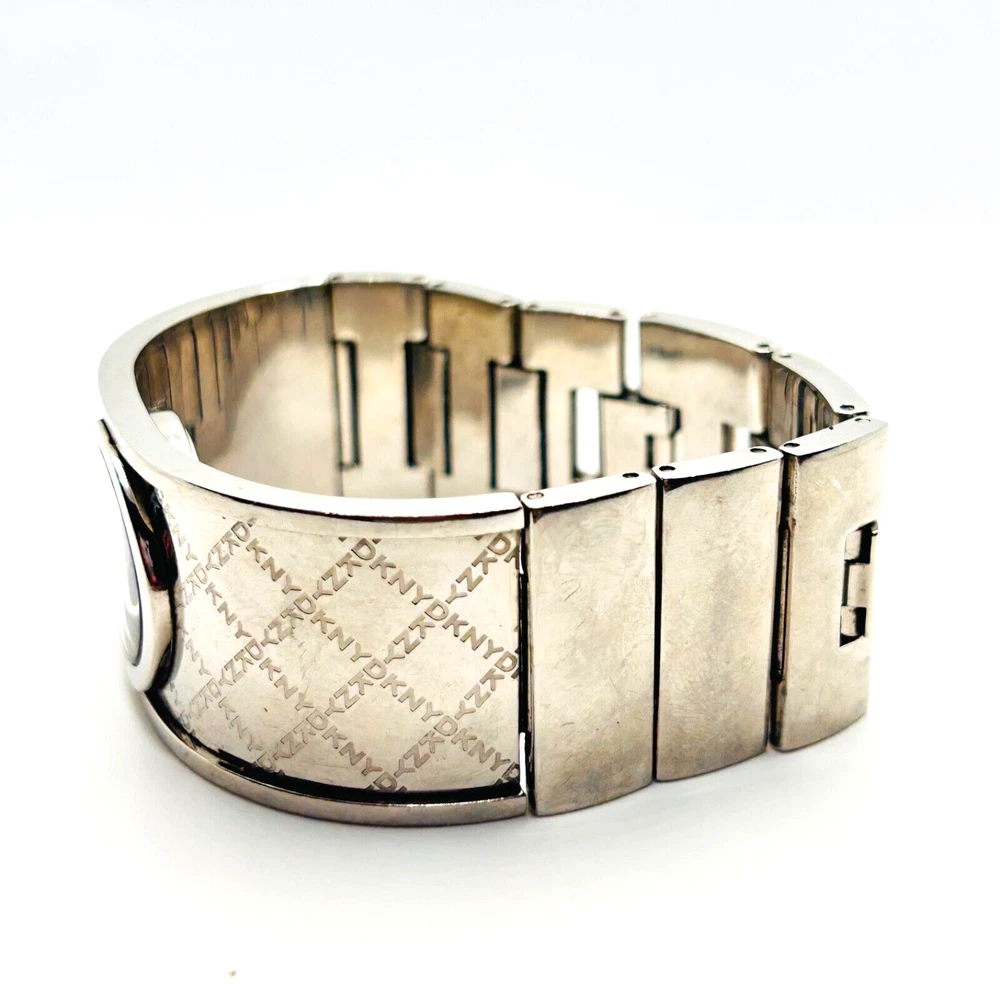 This is a beautiful Wristwatch by the maker DKNY Set in Stainless Steek with a gorgeous bright Silver Watch Face and Silver coloured Watch Hands marked on the back 'STAINLESS STEEL 111007 DKNY NY-4954 5ATM' This piece has a gorgeous Silver engraved cross DKNY hallmark detailing throughout the strap The watch face measures approx. 28mm wide Aesthetically and Mechanically in fantastic condition Battery has been replaced recently and keeps time Would make a lovely gift for that someone special PLEASE NOTE THAT I DO MY UP MOST TO MAKE SURE ALL ITEMS ARE IN GOOD CONDITION UNLESS OTHERWISE STATED BUT THEY ARE MOSTLY ANTIQUE OR VINTAGE ITEMS SO A LITTLE AGE RELATED WEAR IS TO BE EXPECTED, PLEASE DO TAKE THIS INTO CONSIDERATION WHEN LEAVING FEEDBACK. IF NOT BOXED IN THE PHOTO IT WILL BE WRAPPED IN BUBBLE TO PROTECT IT IF I HAVE ANY-BOXES AT THE TIME I WILL SOMETIMES BOX THEM BUT UNLESS STATED IT WONT BE IVE BEEN ON EBAY ALONG TIME MY CUSTOMERS ARE VERY IMPORTANT TO ME SO PLEASE ASK ME IF ANYTHING IS NOT RIGHT AND I WILL TRY AND SORT IT OUT ASAP ALSO IF FOR ANY REASON YOU ARE UNHAPPY WITH YOUR ITEM, PLEASE LET ME KNOW AND I WILL BE HAPPY TO ISSUE A REFUND UPON RECEIPT OF THE ITEM . I HAVE A NO QUIBBLES RETURN POLICY. AND LASTLY THANKYOU SO VERY MUCH FOR YOUR CUSTOM
