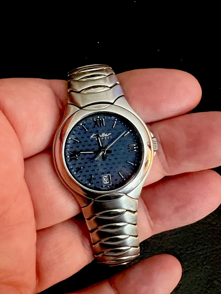 Strap Material: Stainless Steel Brand: Kolber Seller Warranty: No Type: Wristwatch Case Colour: Silver Department: Unisex Adults With Manual/Booklet: No Features: 12-Hour Dial, Sapphire Crystal Strap Colour: Silver Dial Colour: Blue Customised: No With Papers: No Movement: Quartz With Service Records: No Handmade: No With Original Box/Packaging: No Vintage: Yes