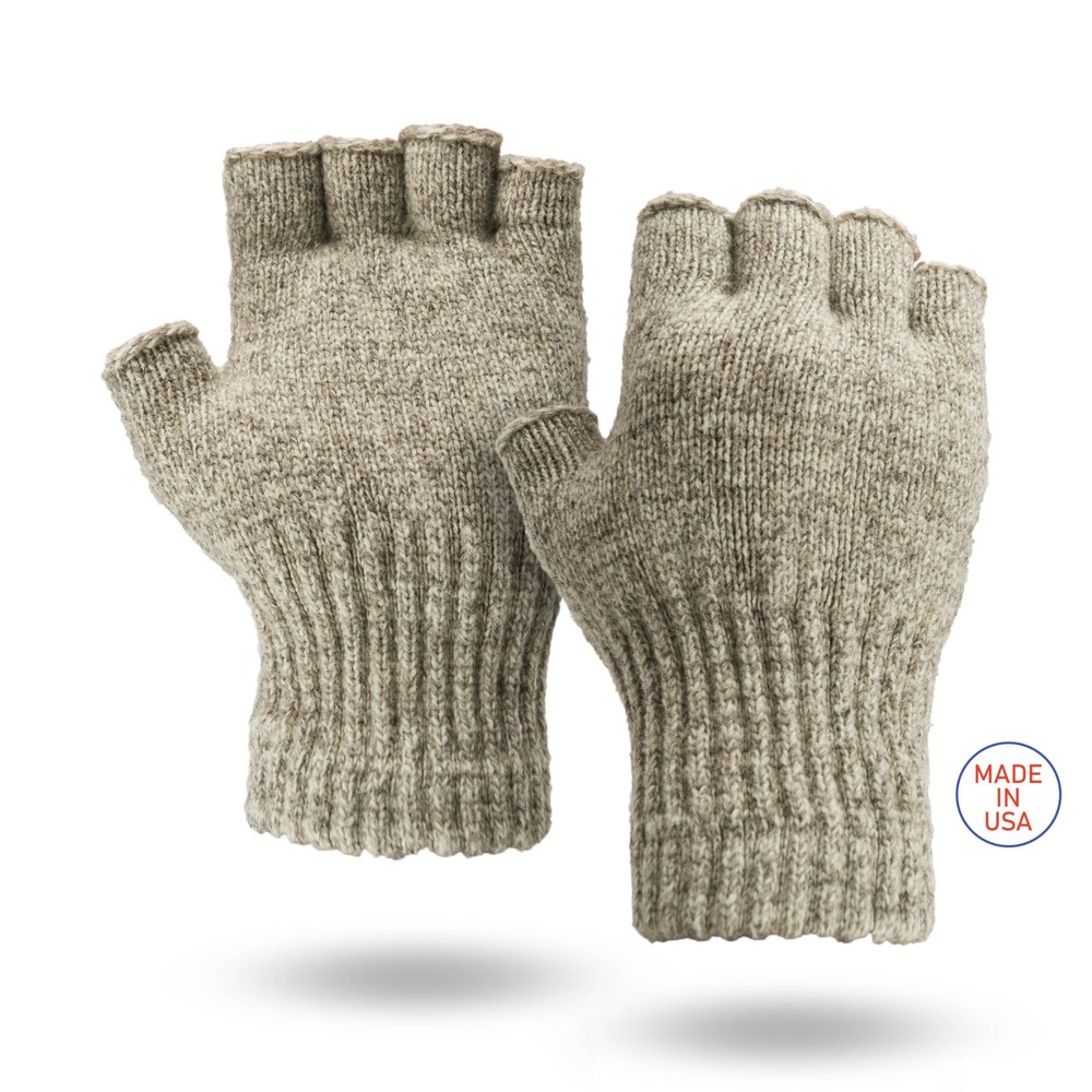 Fingerless Ragg Wool Gloves Made in the USA Style 351 (Beige Large) Made in USA Also available in Charcoal Style # 353 (see our other listing) Elastic wrist keeps out cold Great for walks & hikes Wool offers natural insulating properties Our new ragg wool gloves keep hands warm & toasty. Wool is great because it contains natural insulating properties and repels water. The elastic wrist keep out snow & debris. Available only in oatmeal color. Great for outdoor activities & events, walks and hikes Also available in Charcoal Style # 353 (see our other listing) Shipping We offer FREE shipping on all orders! We ship within Three business days of payment, usually sooner. We use a selection of shipping services such as UPS, FedEx, USPS etc. We only ship to the lower 48 states, no APO/FPO addresses or PO Boxes allowed. Local pickups and combined shipping options are not provided at this time. Return You can return a product for up to 30 days from the date you purchased it. Any product you return must be in the same condition you received it and in the original packaging. Please keep the receipt. Payment We accept payment by any of the following methods: PayPal Please pay as soon as possible after winning an auction, as that will allow us to post your item to you sooner! Feedback Customer satisfaction is very important to us. If you have any problem with your order, please contact us and we will do our best to make you satisfied. Contact Us If you have any queries, please contact us via ebay. We usually respond within 24 hours on weekdays. Please visit our eBay store to check out other items for sale! Thank you for shopping at our store.