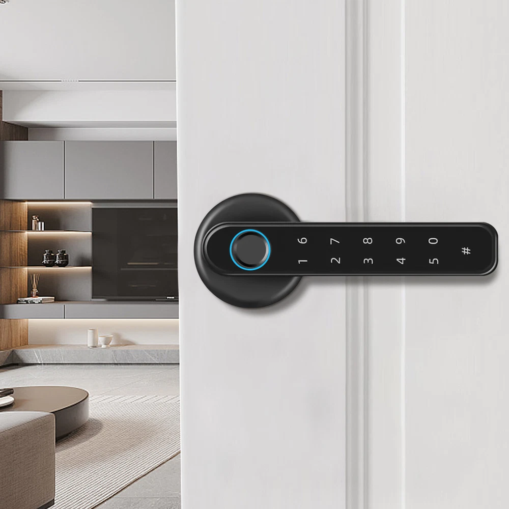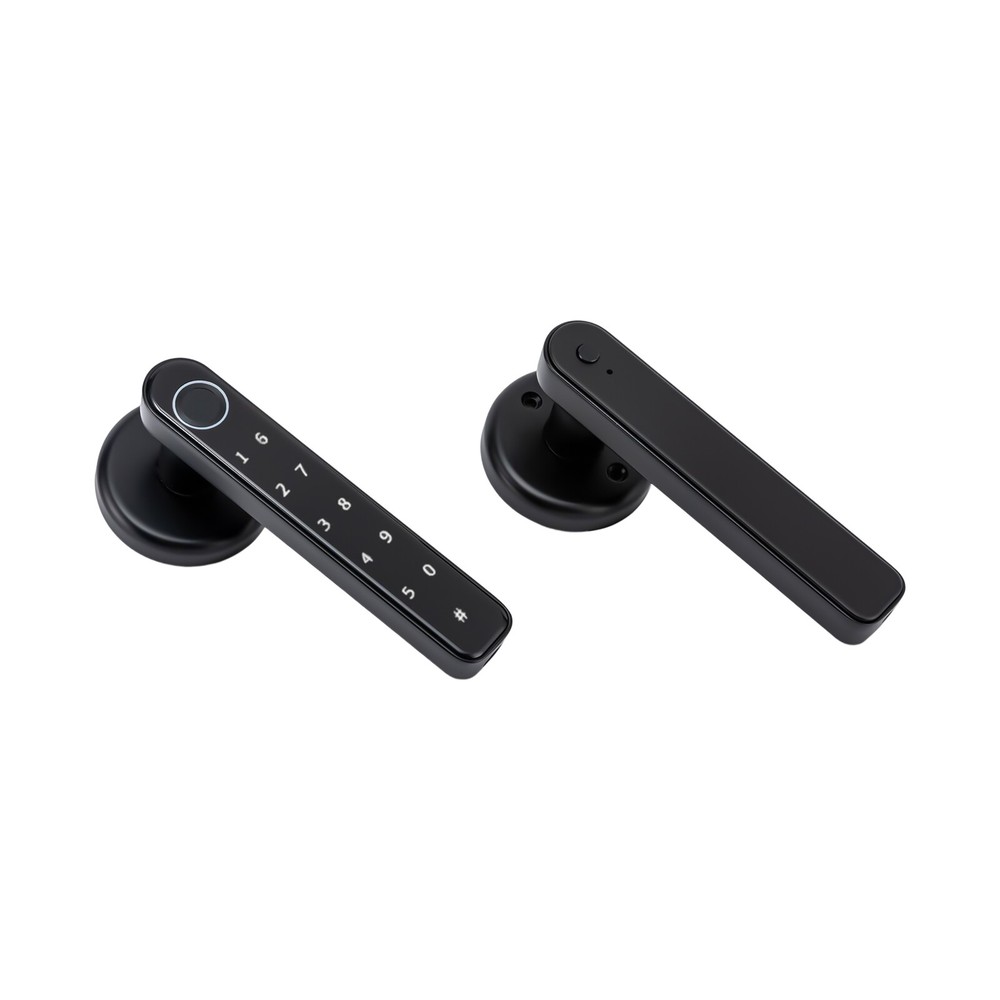 Fingerprint Smart Door Lock Biometric Door Lock Handle Set Smart Lock Front Door Welcome~ Notes:4 * AAA batteries need to be purchased by oneself Description The smart lock can bring a lot of convenience to our life, protect our privacy, and also be the witness of our life. The door lock is made of solid and durable zinc alloy and can be used for a long time. The timeless black look can match many different colors and styles of doors. A variety of powerful functions and high work efficiency can enable you to enter a warm room in a short time, which is a good helper for your life. Key Features High-end Material: The door lock is made of zinc alloy, which is durable, and resistant to rust and corrosion, so it can be used for a long time. Exquisite Workmanship: The door lock is painted to make the surface smoother and the color brighter. It can attract more people’s attention to a certain extent. Multiple Unlocking Methods: There are multiple unlocking methods for this door lock: fingerprint, password, key. You can choose freely according to your needs. Considerate Design: The product is suitable for left and right handed doors so you can install it directly. In addition, when relatives and friends visit and you are not at home, you can also set a temporary password through the app to prevent them from waiting for a long time. Large Capacity: The door lock can store up to 50 sets of fingerprints and 100 sets of passwords. Such a large capacity allows the door lock to be widely used in a variety of different scenarios. High Efficiency: The door lock adopts semiconductor fingerprint unlocking and AI artificial intelligence algorithm, which can automatically perceive and quickly identify fingerprints, allowing you to open the door within 0.5 seconds, so you don't need to wait for a long time. Good Security Performance: The door lock is designed with an anti-peep touch screen and virtual password, so you can enter a random password before and after the correct password. In addition, when the password is entered incorrectly, the product will have an alarm function, which can better protect your security and privacy. Powerful Functions: The door lock is equipped with a mute mode, and you can adjust the volume to ensure that you will not disturb others when you go home at night. At the same time, if you need to open the door frequently, you can set the always-open model, so you don’t have to press your fingerprint every time. APP Intelligent Management: You can manage the door lock through an app, such as door lock logs, deleting and adding users, setting volume, alarm functions, etc. This provides you with more convenience. Strong Endurance: The four 2200mAH batteries can be used about 8000-10000 times, and has a low battery warning function to remind you. When powered off, you can also use the charging bank for emergency charging or the mechanical key, so that you can use it without worry. Simple Installation: The package of the door lock includes all the accessories required for installation, and we also provide a detailed manual, so you can install it only according to the steps in the manual. Easy to Clean: The door lock has a smooth surface and a small size, so you can clean it without spending much effort. After a period of use, you only need to use a towel for cleaning. Ideal Gift: The door lock has powerful functions, a beautiful appearance, and high efficiency. It can be used as a gift for a housewarming. You can also give it to friends and family so that they can enjoy more convenience. Quality Service: We stand behind all our guests and look forward to assisting you with your purchase. It is our pleasure to answer your confusion and questions. So please feel free to contact us if you have any problems. Details Round Corners: The corner of the door lock is round. Compared with the traditional square corners, it can better protect your safety and prevent your skin from being scratched. HD Display: When you enter the room, touch the hidden password keyboard, and the digital display will light up. This clear digital display can help you enter the password correctly and quickly. Application This fingerprint lock is designed to fit US standard doors. It is suitable for the door with a thickness of 1-3/8 inches (35mm) to 2-3/16 inches (55mm). This product can be widely used in wooden doors, homes, closets, interior doors, hotels, bedrooms, studies, offices, apartment buildings, etc. How to Add a Fingerprint A: Add users for the first time: 1. Press the setting key and the blue light flashes. 2. Press your finger 5 times until the green light is always on. 3. Successful entry and automatic exit. B: Add users for the second time. 1. Press the setting key. 2. The blue light flashes. 3. Verify the administrator once. (The first three fingerprint users of the door lock are administrators, and the fourth and subsequent fingerprints are ordinary users.) 4. The verification is successful and the blue light is always on. 5. Enter a new fingerprint, press your finger five times, and the green light is always on, indicating success. How to Delete a Fingerprint 1. Press and hold the setting key for 9 seconds. 2. The blue light flashes, and the red light flashes after 9 seconds. 3. Release your hand, and the green light indicates that the factory reset is successful. Specification Color: Black Material: Zinc Alloy Surface Treatment: Painting Style: Modern Shape: Rectangular Control Method: Touch Lock Type: Keypad Lock Capacity: 50 Sets of Fingerprints and 100 Sets of Passwords Power Supply: 4*AAA Batteries(Included) Capacity of Battery: 2200mAH Service Life of Battery: 8000-10000 Times Charge Port: USB Suitable Door Thickness: 1-3/8 inches (35mm) to 2-3/16 inches (55mm) Net Weight: 0.8kg/1.7lbs Gross Weight: 1kg/2.2lbs Product Size: 15.00cm*6.50cm*6.50cm/5.9*2.5*2.5inch Package Size: 21.8*17.8*7.3cm/8.58*7.01*2.87inch Package Included 2* Door Locks 1* English Manual 2* Keys All Accessories for Install