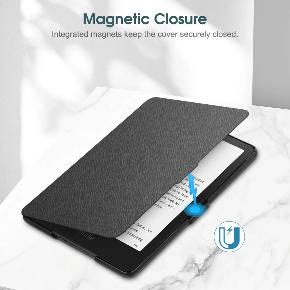 Designed exclusively for 7" all-new Kindle Paperwhite, Kindle Paperwhite Signature Edition & Kids Edition (12th Generation, 2024 Release), and Kindle Colorsoft Signature Edition (1st Generation, 2024 Release). Fits 2024 Releases Only. Super slim and ultra lightweight edition. Protect your kindle paperwhite 2024 or kindle colorsoft signature eReader without adding unnecessary bulk or weight. Automatically wake your 7 inch kindle paperwhite 12th generation / kindle colorsoft signature edition 2024 tablet or put it to sleep by simply opening or closing the case, saves power and extends your reading time. Precisely cut-out to provide easy access to all buttons, ports and features. Magnetic closure ensures cover securely closed, provides full protection for your device at all times. Supports 2024 kindle paperwhite signature and colorsoft signature edition wireless charging with case on. Made from durable synthetic leather with soft interior to prevent scratches. Premium hard back shell locks your tablet in place and absorbs drops and bumps - Snug fit, durable and protective.