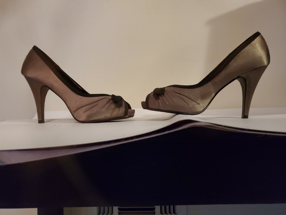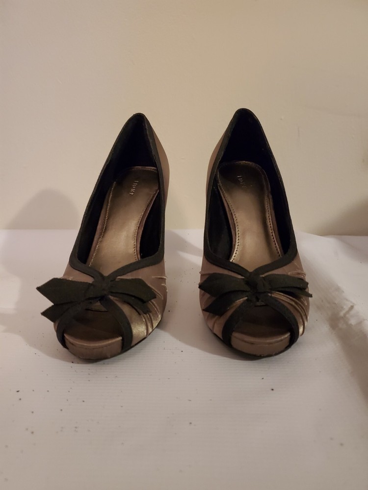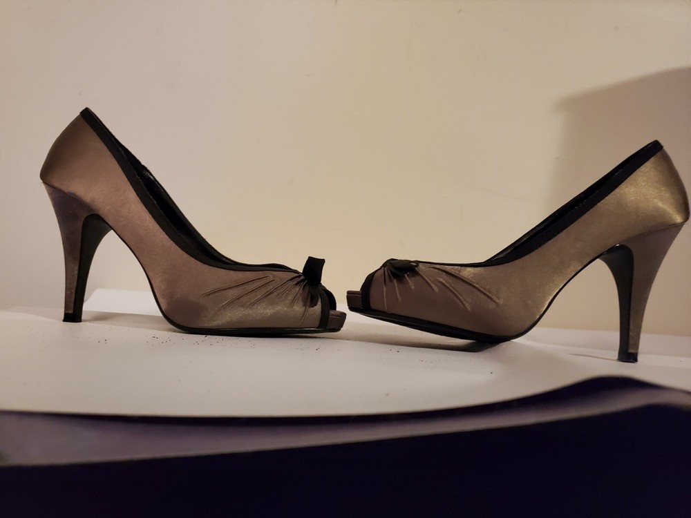 Prada Metallic Silver Black Bow Pump Heels Size US 9 EU 39