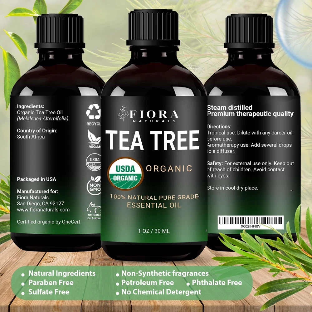 Tea Tree Essential Oil by Fiora Naturals- 100% Pure Organic Oil, for Face, Hair, Skin, Acne, Scalp, Foot and Toenails. Melaleuca Alternifolia, 1 oz /30ml USDA Certified Organic Tea Tree Oil - 100% Natural, Steam distilled, 100 Percent pure, undiluted oil with no additives or fillers. Highly potent unfiltered. Packaged in the USA Therapeutic Grade Tea Tree Oil - Our high potency Essential oil. Ideal for Dandruff, Razor bumps and Ingrown hair Aromatherapy - Add a few drops of TeaTree Oil in a diffuser to freshen up the air, or use as massage oil for the body. For Skin And Hair- Add a few drops in bath to help with skin and scalp conditions. For Conscious Consumers - No GMOs, Parabens, Harsh Preservatives, Synthetic Colors or Fragrances, Phthalates or Sulfates. Vegan and not tested on animals Therapeutic Grade Tea Tree Oil - Our high potency Essential oil. Shipping We offer FREE shipping on all orders! We ship within Three business days of payment, usually sooner. We use a selection of shipping services such as UPS, FedEx, USPS etc. We only ship to the lower 48 states, no APO/FPO addresses or PO Boxes allowed. Local pickups and combined shipping options are not provided at this time. Return You can return a product for up to 30 days from the date you purchased it. Any product you return must be in the same condition you received it and in the original packaging. Please keep the receipt. Feedback Customer satisfaction is very important to us. If you have any problem with your order, please contact us and we will do our best to make you satisfied. Contact Us If you have any queries, please contact us via ebay. We usually respond within 24 hours on weekdays. Please visit our eBay store to check out other items for sale! Thank you for shopping at our store.