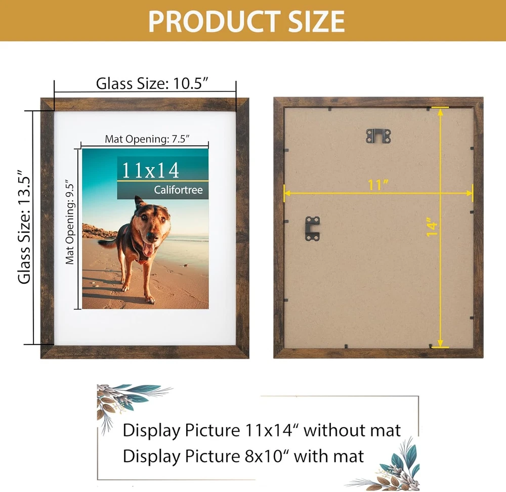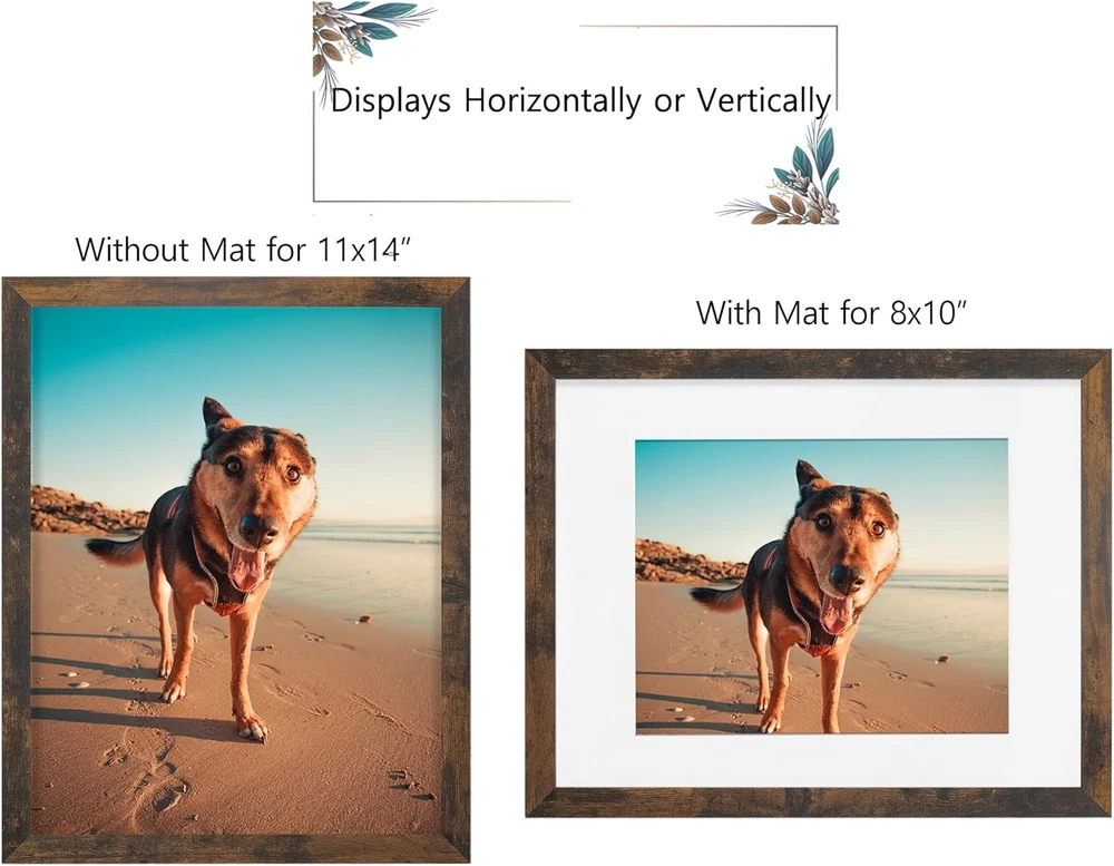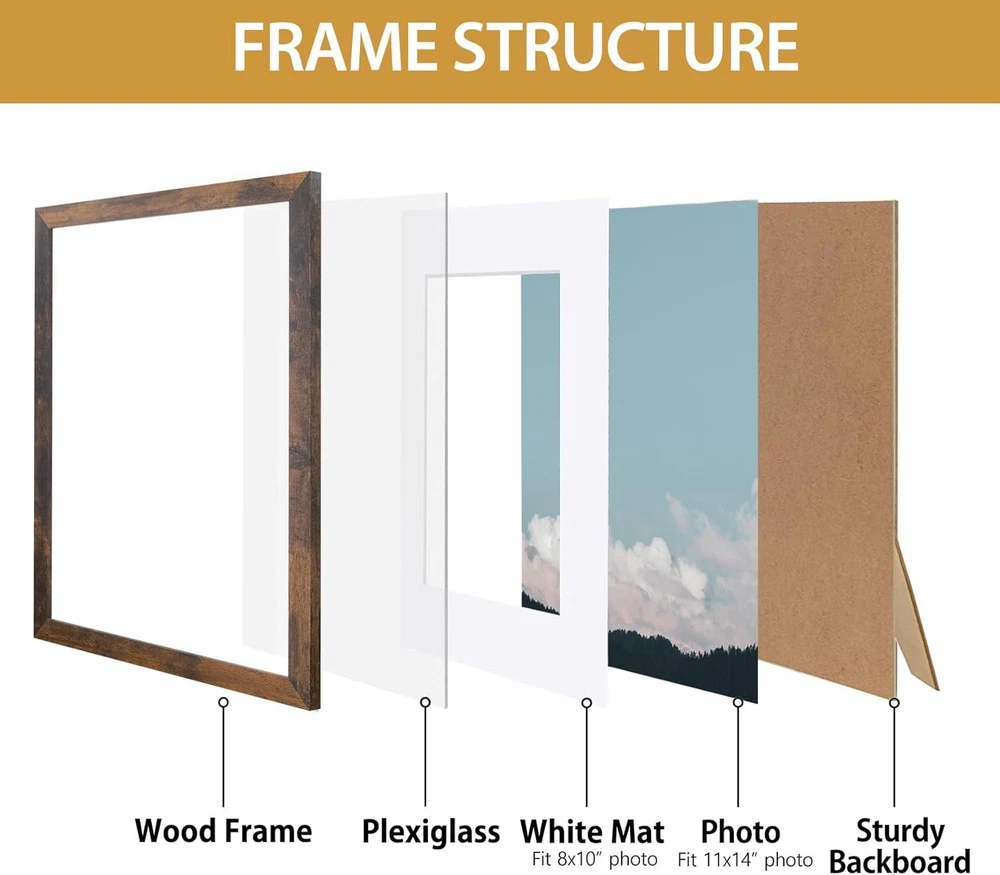 Fire Brown 11X14 Picture Frame - Can Display Photo 8X10 with Mat, Engineered Woo