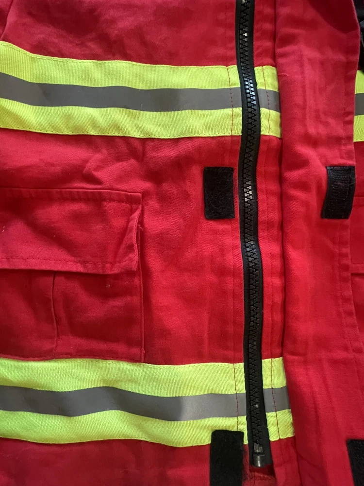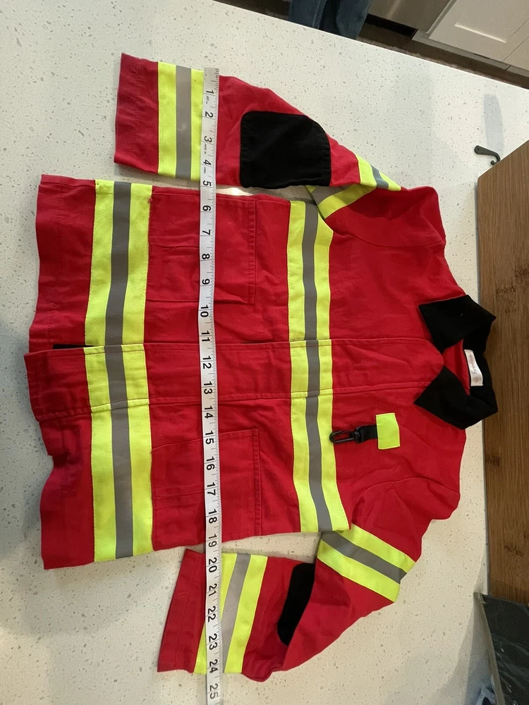 Get ready to save the day with this stunning Fire Fighter Costume Jacket from Relibeauty 120. Made with high-quality materials, this jacket is perfect for any young boy who wants to dress up and play the part of a brave fireman. The bright orange color adds a pop of vibrancy to any costume collection, and the jacket's style is sure to impress. With a size of 7-8, this jacket is perfect for boys of that age range. Whether you're putting together a costume for a play or just want to add to your collection, this Fire Fighter Costume Jacket is a must-have. So why wait? Order yours today and become the ultimate fireman! This item is in great condition. The exact sizing isn’t listed so please see photos with measurements. From a smoke-free home.
