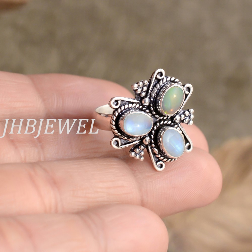Welcome to jhbjewel Rainbow Moonstone & Fire Opal Gemstone 925 Sterling Silver Ring For Family Gift Payment Methods: We accept payments only by Payoneer and E-bay .Using this feature you can instantly pay by your credit card or from your PayPal balance. As this is a transaction service provided by eBay, you are assured for complete security in online payments. We will never know your credit card information. Payment should be made within 10 days since the winning of the first item. Non-paying winners will be reported to eBay. Serious bidders only please. Please email us with any questions you may have during the transaction. Shipping Information: US Shipping : $free Shipping International: $free Shipping Shipping & Delivery Time: We ship within 1-3 business days after payment is received. Delivery is generally within 15 TO 20 DAYS worldwide after shipping. We provide you each item is individually packed securely with quality products to help ensure safe and undamaged delivery. Packages are shipped via Registered International Air Mail. In rare cases it makes take up to 4 weeks for delivery depending up on the destinations and customs in your country. All packages have a fully filled customs declaration form in order to avoid any delay in customs. Returns Policy We want you to be100%satisfied with our products and our service. Your satisfaction is our priority. That's why we offer a simple 30days Money-Back Guarantee. If you are not completely satisfied with the purchase, simply send it back to us within 30 days of receiving it and we will issue you a full refund for your purchase - No Questions Asked! Return shipping charges are not reimbursable. Please contact us if you would like to in itiatea return, so that we may guide you through the process. We can be reached through the "Ask a question" link on the listing. All items must be in their original condition as received, not worn or altered. Product Pictures: All jewelry photos are taken by professional photographers. They use many photo equipment, like Flash, Day Light and etc. Some of the stone color might have effected a little. (Example: An amethyst stone is dark purple color, under the flash and lights it might affect the color a little and its hows little light purple instead of dark purple.) If you bring the jewelry outside under the sunshine you will see the same piece showing under the daylight. Please also note we have tried to keep the images as accurate as possible; however there might be some color variations in the images published on our store and the real product due to light effects & photography. FEEDBACK: Feedback DSRs (Detailed Seller Ratings). We want to earn your good feedback and 5 stars DSR rating. Unfortunately, 4 stars are considered a bad rating for sellers and can resulting restrictions on our account. Please help us maintain our business and give a 5-Star rating in all 4categories. We strive for 100% Customer Satisfaction and weal ways leave positive feed backs to our buyers. Our feedback and DSRs are extremely important to us as better DSR scores affect our search placement on eBay. If you still think that you still can? t leave a 5-Star across the Board, please email us or call us and we assure you that your issue will be resolved immediately. Sincerely, jhbjewel
