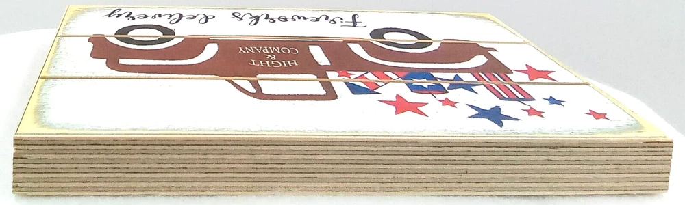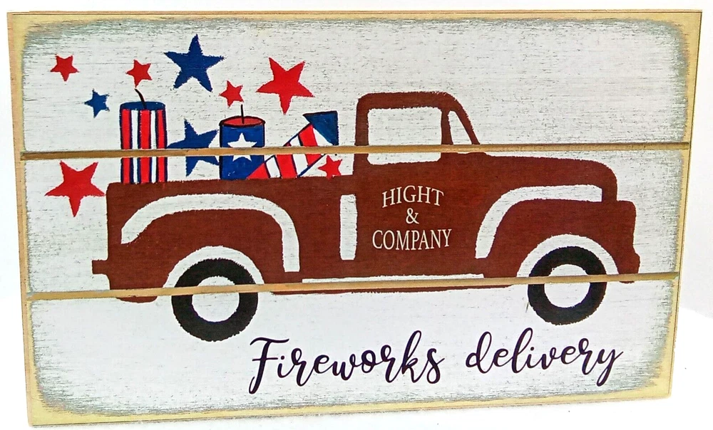 Fireworks Delivery Truck Block Sign Wood White Red Blue Brown Distressed 5"Hx8"L. Condition is Brand New/Unused. The image distressed with a pallet sign look. This was made in Lancaster, PA. Please check out the photos in this listing for further information. If you have any questions or concerns, please contact us. Thank you for your support. We ship vintage and new items. We carefully pack with care to ensure the safety of each item. We do not pass these packaging costs onto the buyer. Furthermore, we do not charge any extra fees for handling. We only charge for the USPS shipping charge. We do monitor shipping prices frequently. In most cases, we do find the USPS to be the most inexpensive way to ship our products. We try to be as detailed as we possibly can in our photos and descriptions. We try to mention any imperfections in our vintage items. We may miss things from time to time or our photos may not be enough clarification for you to see the item. We will be glad to answer any questions or send you more photos. If at any time, you have a question or issue, please contact us immediately. We will contact you within 24 hours. We want to make sure you have a good experience in purchasing any of the products. If you are happy with your purchase, please leave feedback. It will help us to grow and offer more great items in our store! Thank you for your interest in one of the many products in our eBay store! Renee Burly Owl Lady