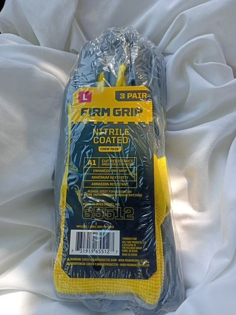 3 pair Large Firm grip Nitrile coated Crew pack 100% polyester SHIPPING We Primarily Ship Using Recycled Packaging Materials. Occasionally We May Change the Method of Shipping. If You Need an Item Shipped by a Certain Carrier, Please Let Us Know Before You Place the Order. Batteries are not included. All Measurements are Approximate. RETURNS If the item is not completely satisfactory, we offer a 30-day return guarantee. Just open a return authorization through eBay and return the item. For New items that are Sealed and have been Opened a Partial Refund is Offered. Happy eBaying!