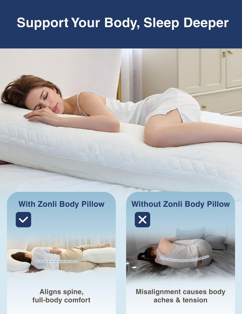 The Full Body Pillow is the ultimate companion for a restful night's sleep and relaxation. Filled with premium memory foam, it conforms to your body’s natural curves, offering full support for your back, neck, shoulders, hips, and knees. Perfect for side sleepers, pregnant women, and anyone seeking extra support, this pillow alleviates pressure points, providing relief and ensuring a rejuvenating, pain-free sleep.One standout feature is its adjustable firmness. The pillow has a hidden zipper, allowing you to easily add or remove foam to customize the height and firmness to suit your preferences. Whether you prefer a softer, plush feel or a firmer, more structured pillow, pillow adapts to provide tailored comfort for uninterrupted, restorative sleep. The pillow cover is made from ultra-soft faux rabbit fur microfiber on one side, offering a plush, silky-smooth touch that’s gentle on the skin. The reverse side is crafted from crystal velvet, which is soft, durable, and skin-friendly. Both fabrics are OEKO-TEX certified, meaning they’re free from harmful chemicals, making the pillow safe for all skin types. The Full Body Pillow is not just for sleeping. It provides versatile support for reading, lounging, nursing, or relaxing after a long day, alleviating discomfort in the back, abdomen, hips, and knees. Ideal for pregnant women or those with chronic pain, it supports a wide range of activities. Maintaining the pillow is easy with its removable, machine-washable cover. It’s hypoallergenic and can be washed on a gentle cycle and tumble-dried on low heat, ensuring a fresh and soft pillow every time. As a thoughtful gift, the Full Body Pillow is perfect for friends, family, or coworkers who appreciate comfort and relaxation. Its luxurious design and versatile support make it a cherished gift for any occasion. Ultimate Comfort & Support: Large Body Pillow is filled with a blend of premium shredded memory foam and PP cotton to provide the perfect balance of softness and support for a truly restful night's sleep. It cradles your neck, shoulders and back, relieving pressure and discomfort, and effortlessly conforms to your body's natural curves for a deeper rest. Quilted and reinforced design: Hug Pillow features a unique wheat ear-shaped quilting technique . The tight stitching increases fill density and helps keep the inner materials evenly distributed, preventing shifting over time. This thoughtful design extends the pillow’s lifespan while maintaining breathability. Skin-Friendly and Breathable:long pillows are crafted from soft, skin-friendly microfiber for a gentle touch and lasting comfort., which can keep you dry and comfortable while you're sleeping.The height and softness of the pillow can be adjusted by the zipper at the top to meet your diverse needs. Easy Maintenance: Pillow insert can be removed. Please use mild detergent. Pillows are vacuum-packed in order to reduce energy loss during transportation. Upon receipt, gently pat and fluff the pillow, then let it rest for 24 hours to achieve the perfect state. More Than Just a Pillow:At 20x54 inches, this versatile full-body pillow is ideal for supine, side-lying and prone sleepers .Great for lounging in bed, binge-watching on the sofa, or curling up with a book—it’s your go-to companion for relaxation anytime, anywhere.
