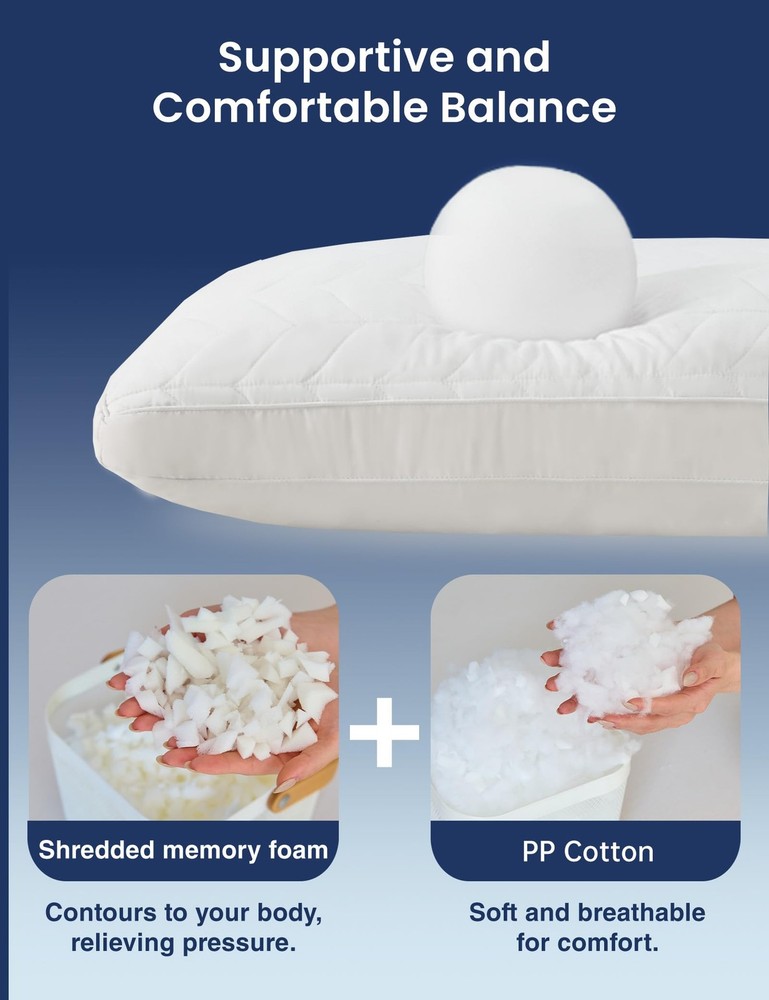 $ 21.54Vaverto Queen Gel Memory Foam Pillow Ventilated Orthopedic Support for Beds
