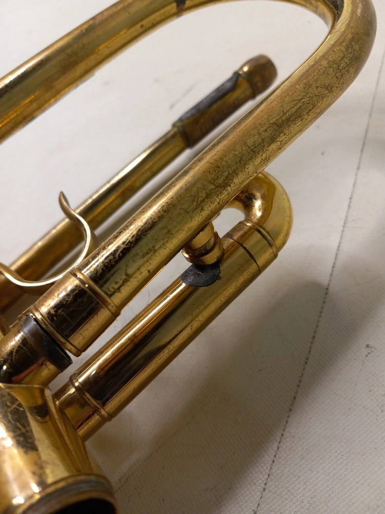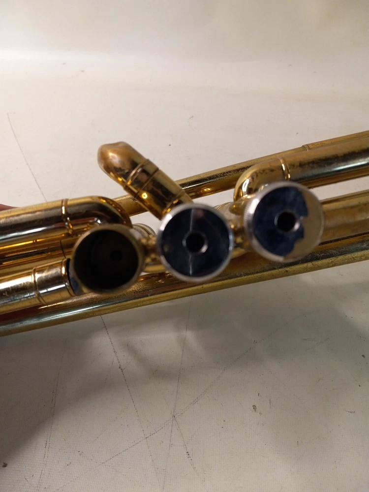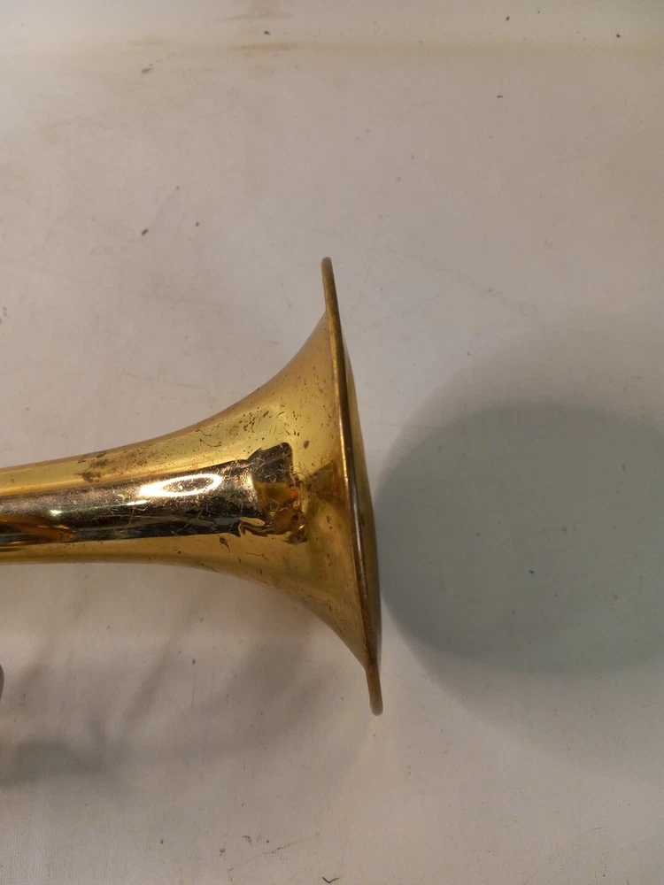 Has dents and welds broke loose. No Mouth Piece. Pistons need help. Possible other issues.